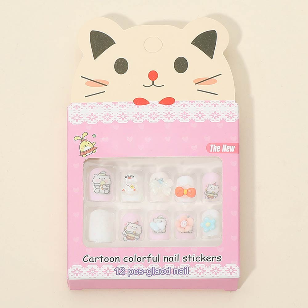 Details • Size : One Size • This kids cartoon press on nail set features 12 fun, playful nail designs made for easy peel-and-stick use. No glue or tools required, making it perfect for kids parties, playtime, gifts, and beginner nail fun. Designed for quick application and easy removal, it encourages creativity, self-expression, and mess-free nail decorating at home or on the go.