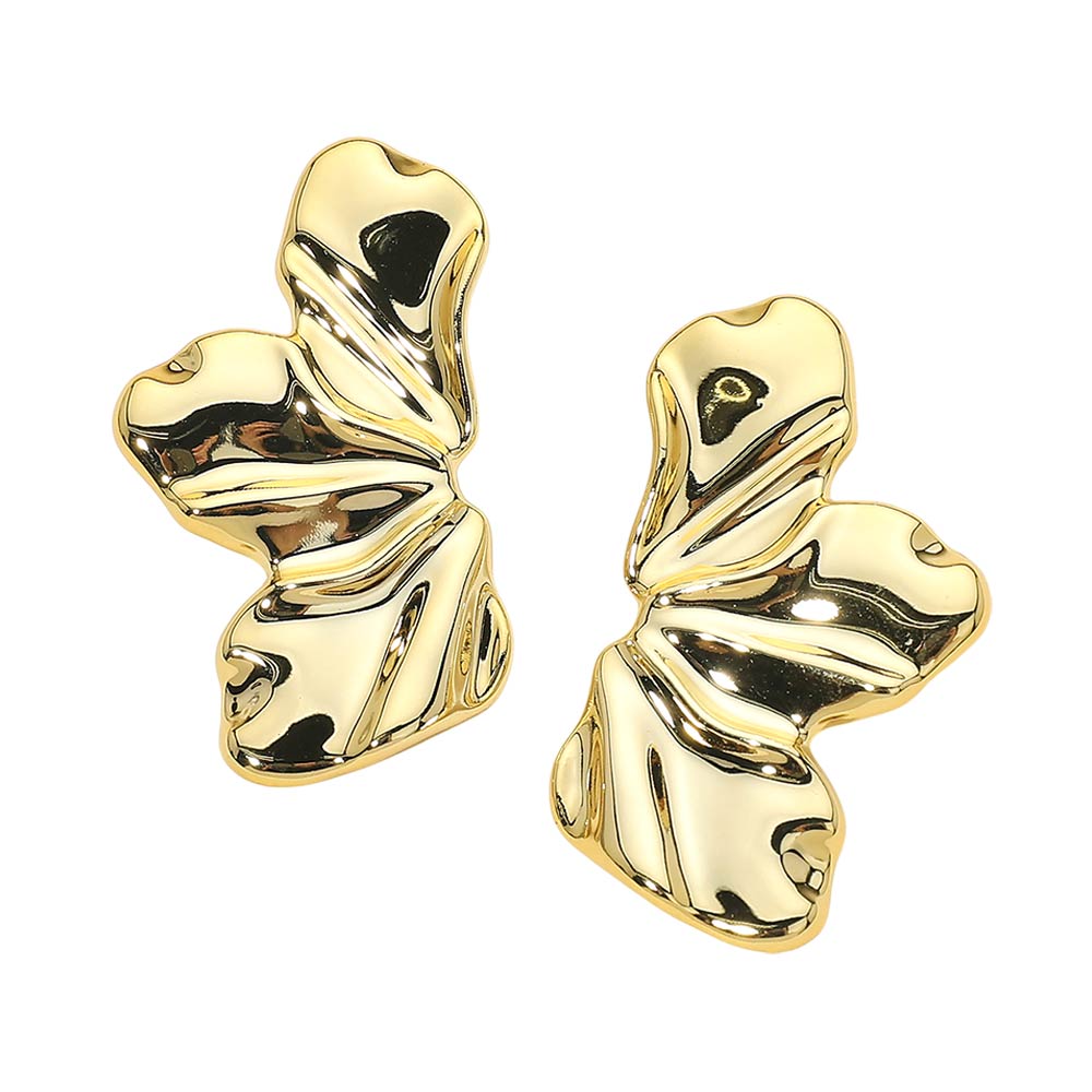 Details • Size : 1" X 1.75" • Post Back • These abstract petal earrings feature a fluid sculptural silhouette with a polished finish that adds modern elegance to any look. Designed for everyday wear or special occasions, they offer a bold yet refined statement that pairs easily with casual and dress styles.