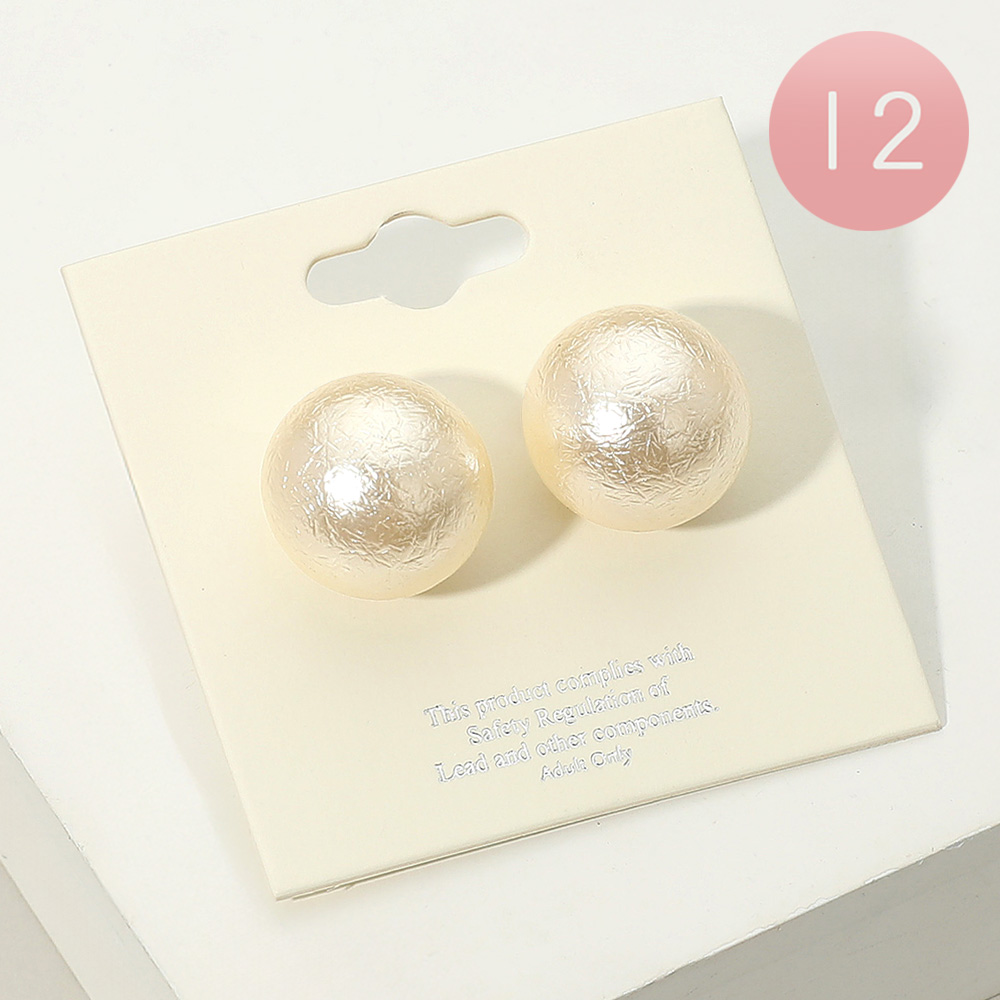 12Pairs - Chunky Textured Pearl Stud Earrings