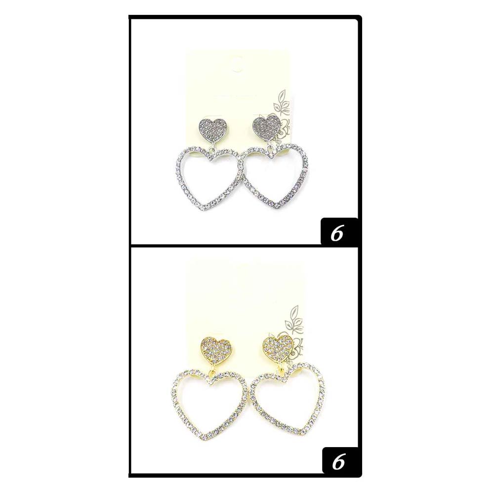 12Pairs - Rhinestone Pave Double Heart Drop Earrings
