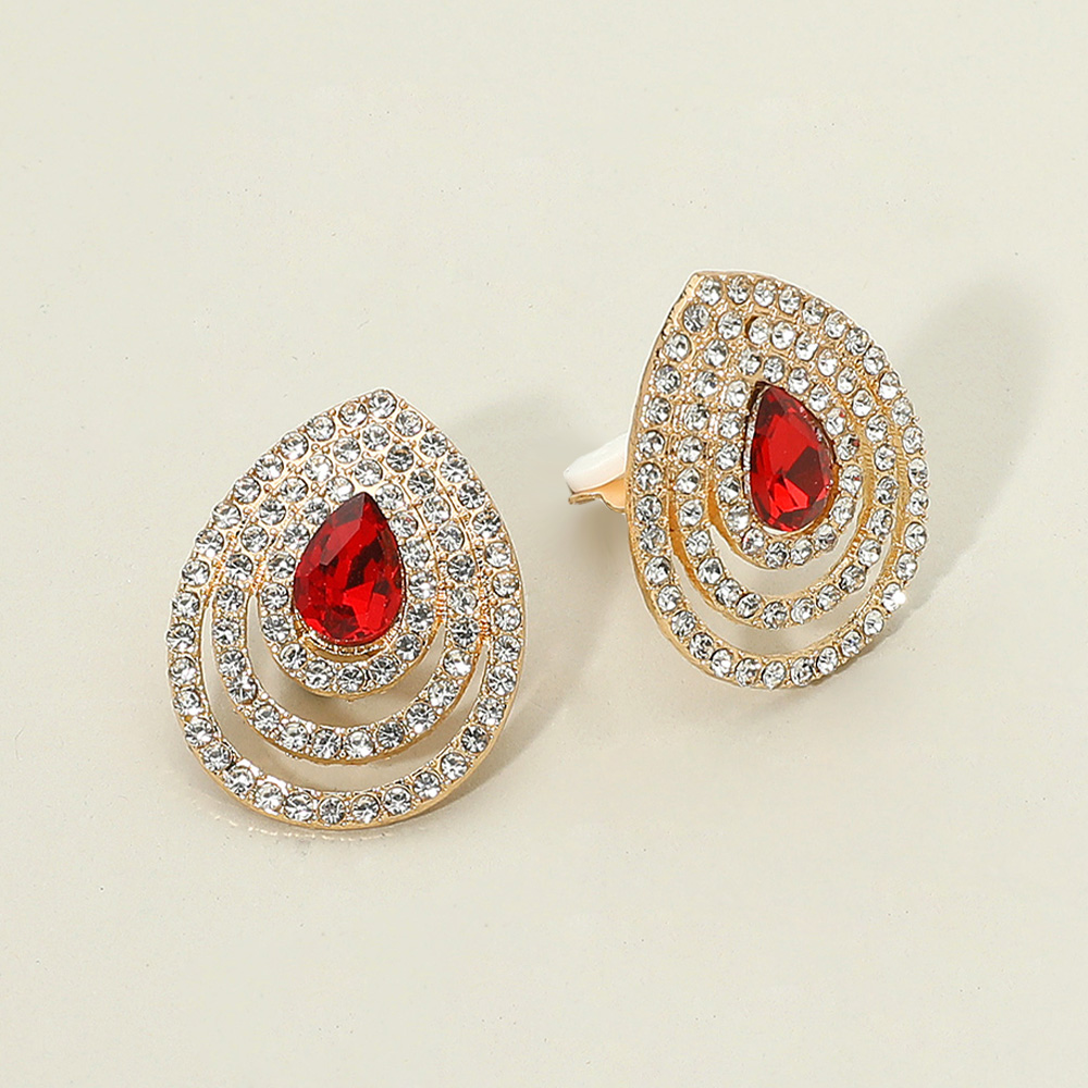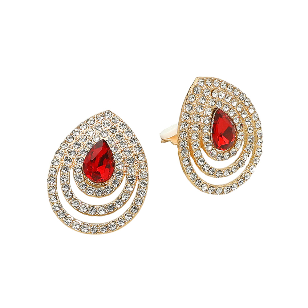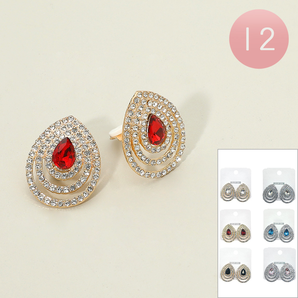 Details • Size : 1" X 1.2" • Clip On • Add elegance with teardrop clip-on earrings featuring a striking gemstone center framed by multi-layer rhinestone accents. Designed for non-pierced ears, these statement earrings offer sparkle and sophistication, perfect for weddings, formal events, and special evening occasions.
