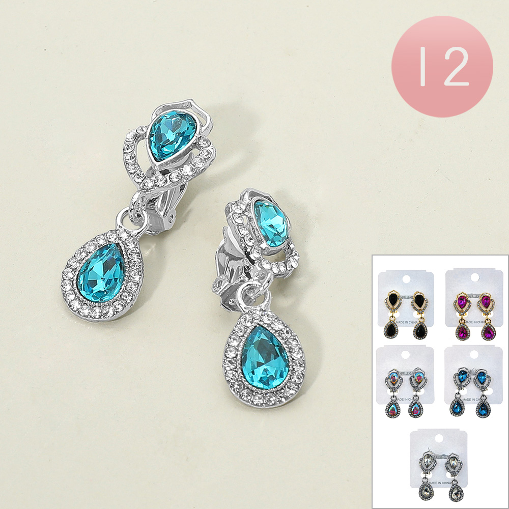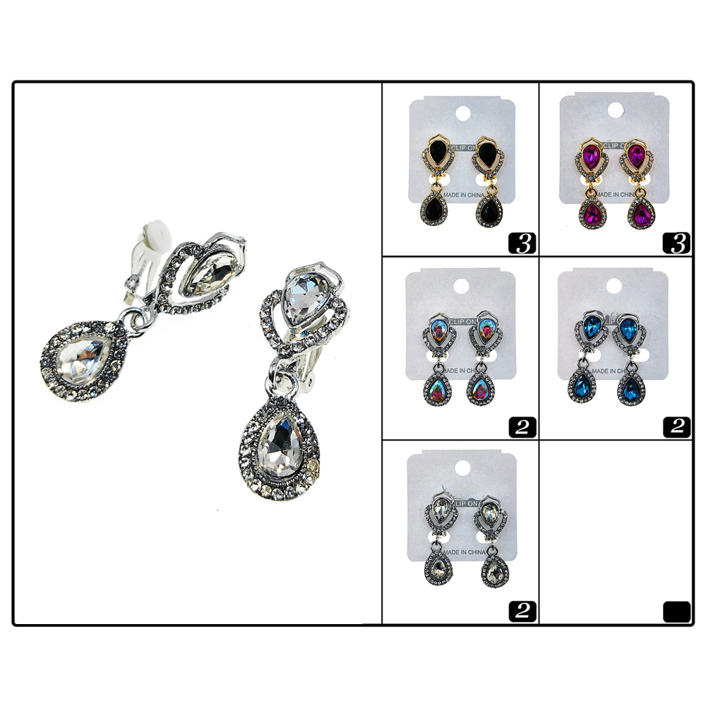 Details • Size : 0.7" X 1.7" • Clip On • Shine with these teardrop clip-on earrings, featuring sparkling rhinestones and a radiant teardrop centerpiece. Designed for comfort without piercings, these elegant earrings are perfect for parties, weddings, or evening events, offering timeless glamour and effortless sophistication.