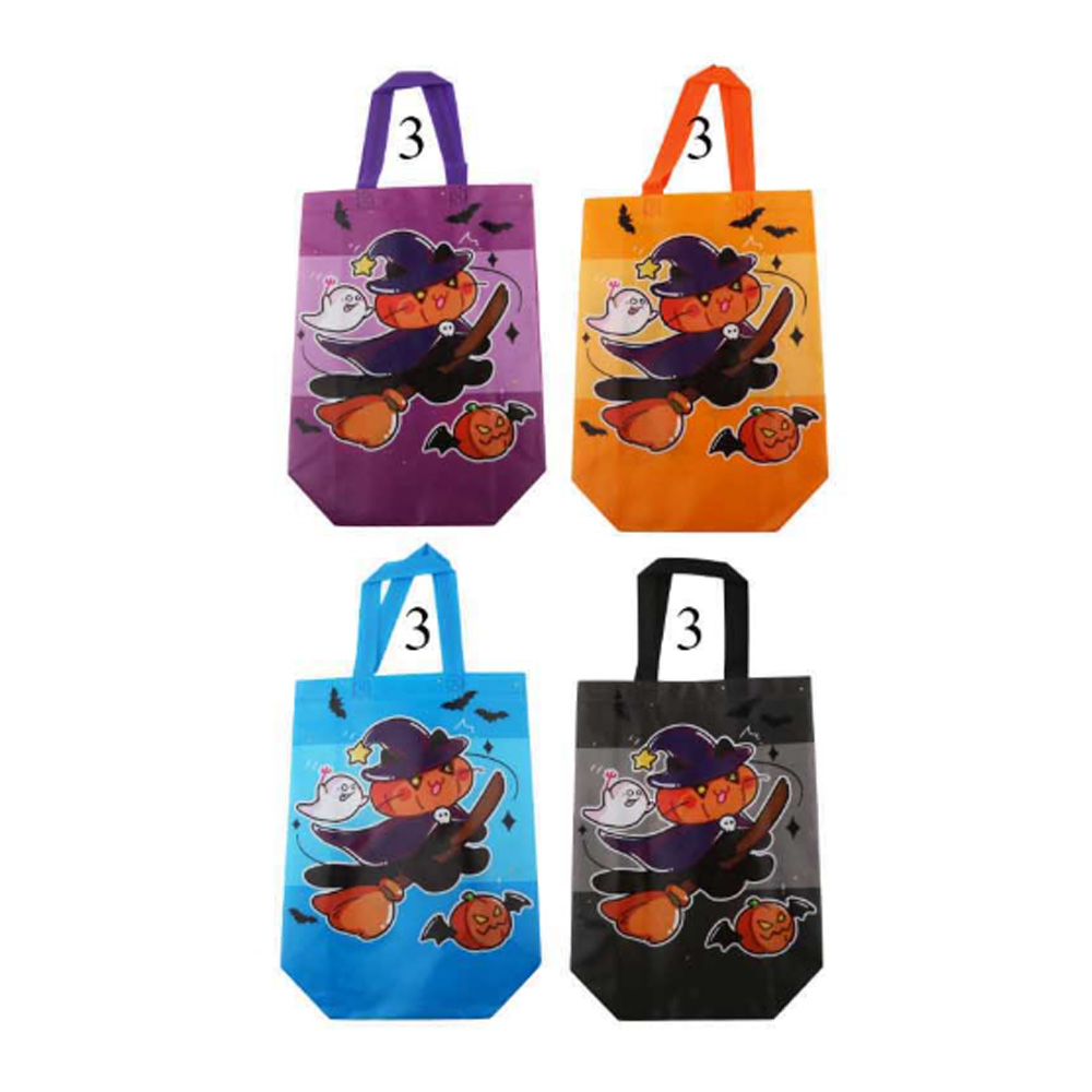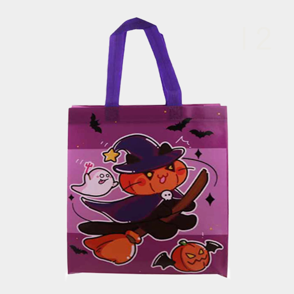 Details • Size : 10" X 13" X 4" • Top Handle Size : 6" L • Delight trick-or-treaters with these Halloween bags featuring a cute witch cat, ghost, pumpkin, and bats. Durable and reusable, each pack includes 12 bags in assorted colors, perfect for candy, small gifts, and party favors. A festive and fun addition to Halloween celebrations for kids and families.