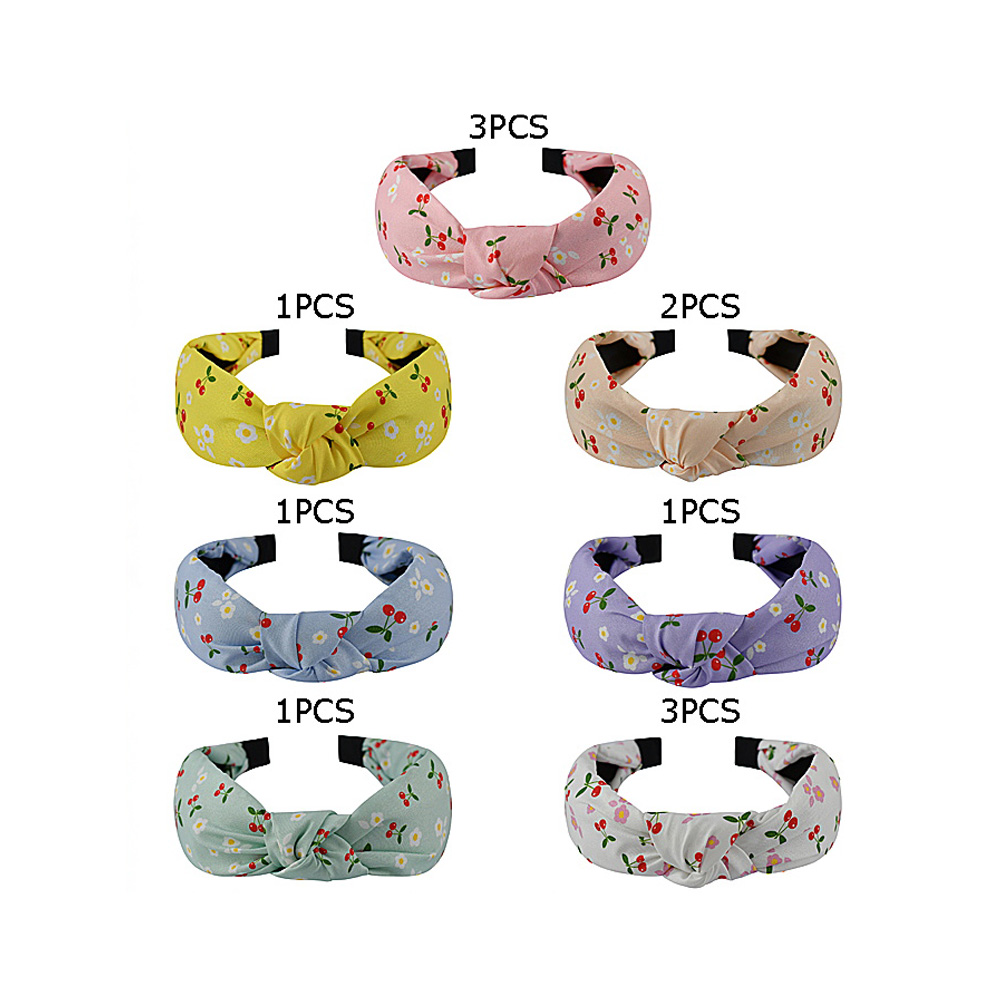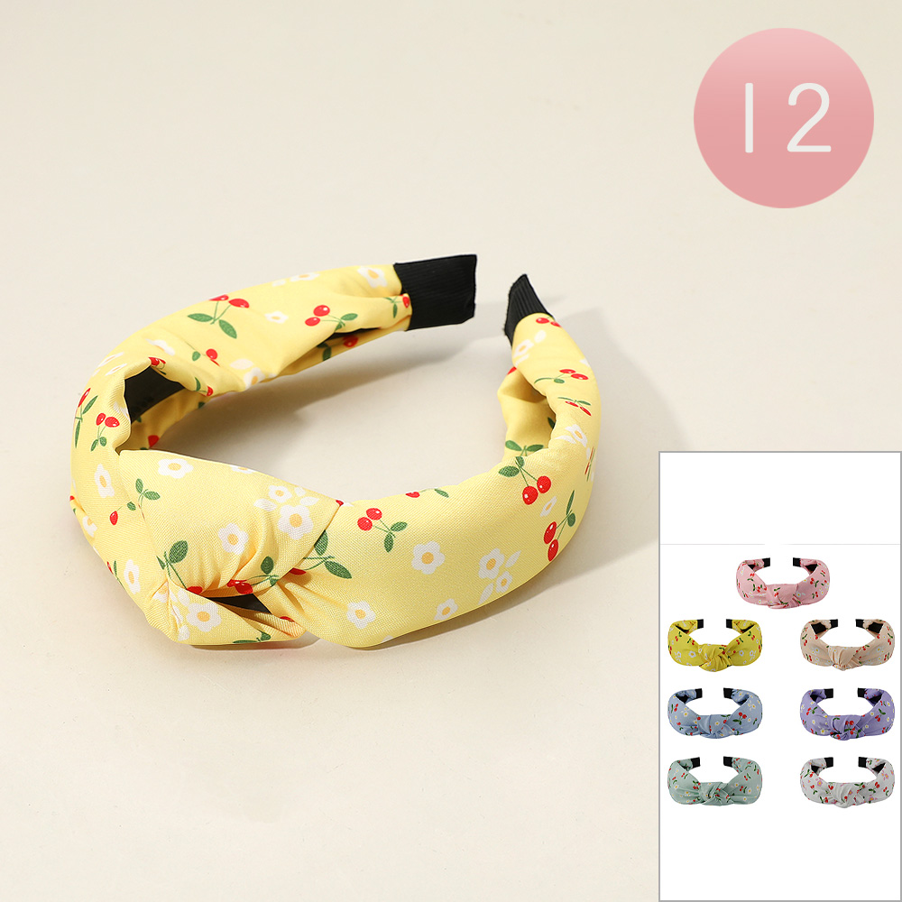 12PCS - Flower Cherry Pattern Printed Knot Headbands