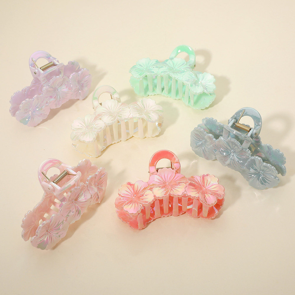 Details • Size : 4" X 2.5" • Set of 12 flower design hair claw clips crafted with durable spring clasps for secure and stylish hair management. Lightweight and comfortable for daily wear, these floral clips add a playful yet elegant touch to any hairstyle, making them perfect for casual use, parties, or gifting.