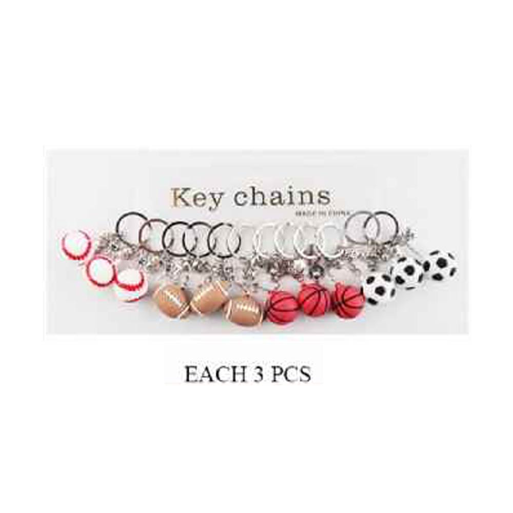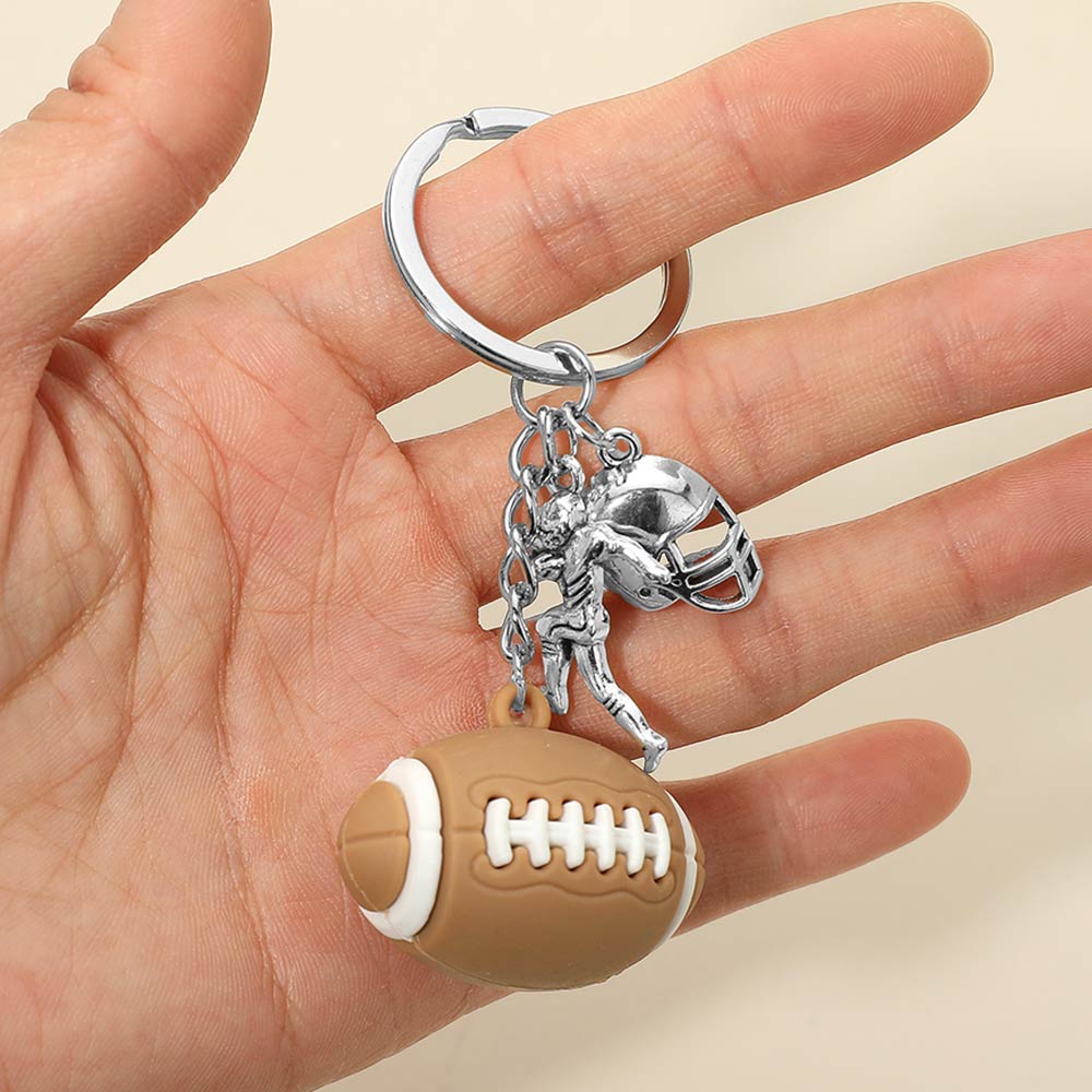 Details • Size : 3.25" L, 1.75" X 2.25" • Sports-themed charm keychain featuring a detailed player figure paired with a textured sports ball accent. Designed with a sturdy keyring and chain for everyday use on keys, backpacks, handbags, or gear bags. A fun novelty accessory ideal for game day displays, sports collections, fan gifts, party favors, and boutique accessories.
