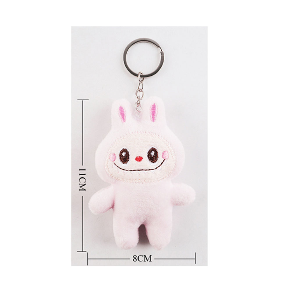 Details • Size : 6" L, 2.7" X 4" • Soft plush bunny doll keychains with embroidered faces and metal key rings. This 12-piece set makes adorable party favors, gifts, or cute bag accessories for kids and bunny lovers alike.
