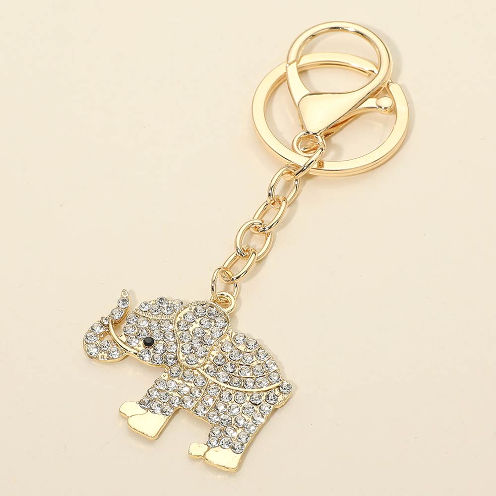 Details • Size : 3.6" L, 1.75" X 2.6" • Elephant charm keychain featuring full rhinestone detailing with a playful, eye-catching silhouette. Designed with a secure keyring and lobster clasp for easy attachment to keys, handbags, or backpacks. A charming accessory ideal for gifting, boutique displays, party favors, and everyday decorative use.