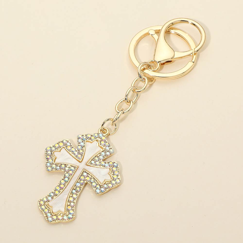 Details • Size : 4.25" L, 1.4" X 3.25" • Elegant cross charm keychain accented with shimmering rhinestones and a polished outline for standout appeal. Designed with a sturdy keyring and lobster clasp for easy attachment to keys, handbags, or totes. A meaningful accessory ideal for gifting, faith-inspired collections, and everyday decorative use.