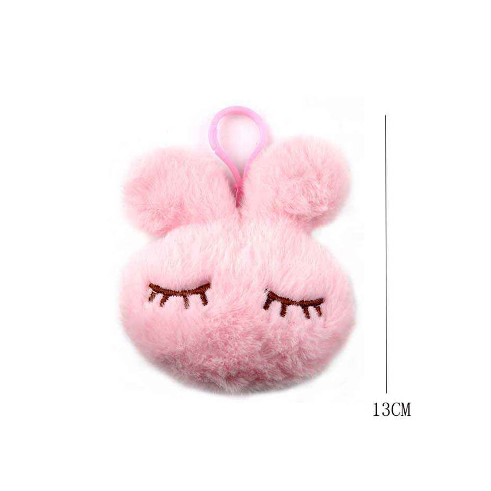 Details • Size : 4.6" L, 3.75" X 3.75" • Soft plush bunny face keychain featuring a playful sleepy expression and pom-style silhouette. Designed with a lightweight clip for easy attachment to bags, backpacks, or keys. A charming accessory choice for gift shops, party favors, seasonal displays, and cute character-themed collections.