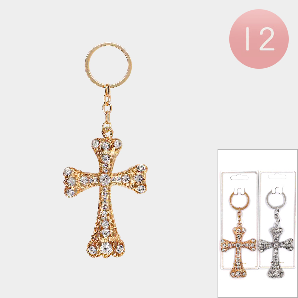 12PCS - Stone Embellished Cross Keychains 12PCS - Stone Embellished Cross Keychains