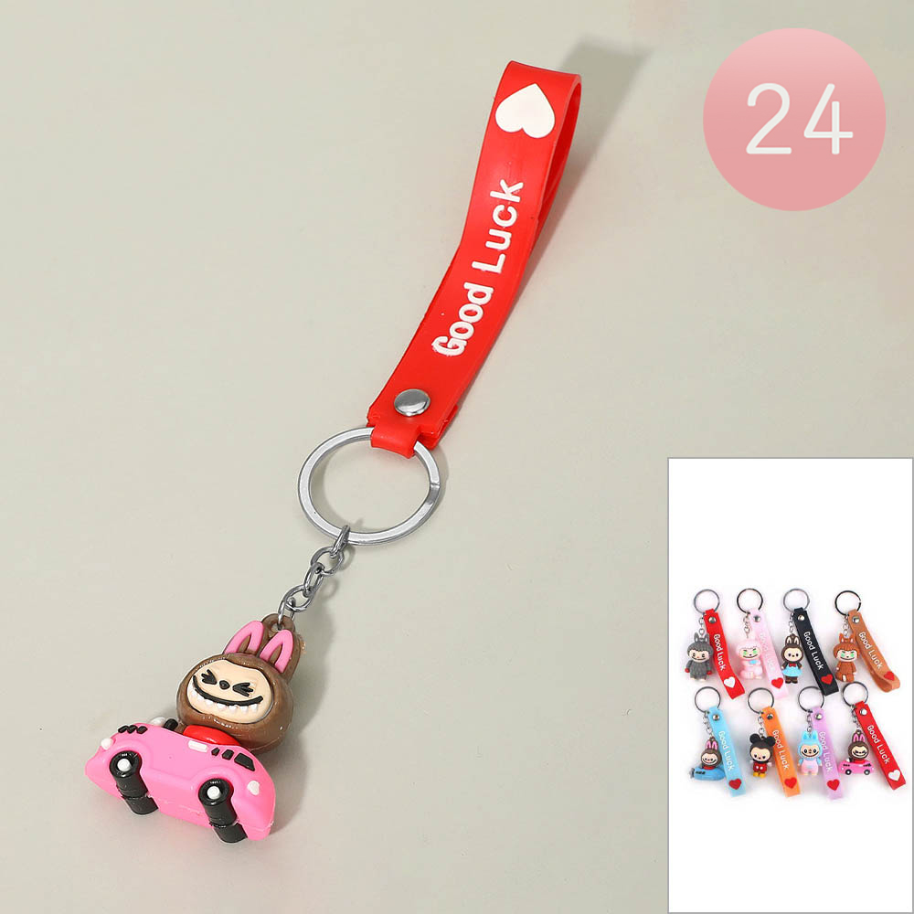 Details • Size : 5.25" L, 2" X 1.75" • Cute keychain featuring a playful character charm and a wrist strap with “Good Luck” text. A fun accessory for bags, keys, or backpacks, designed to add a touch of charm and positivity to your everyday look.