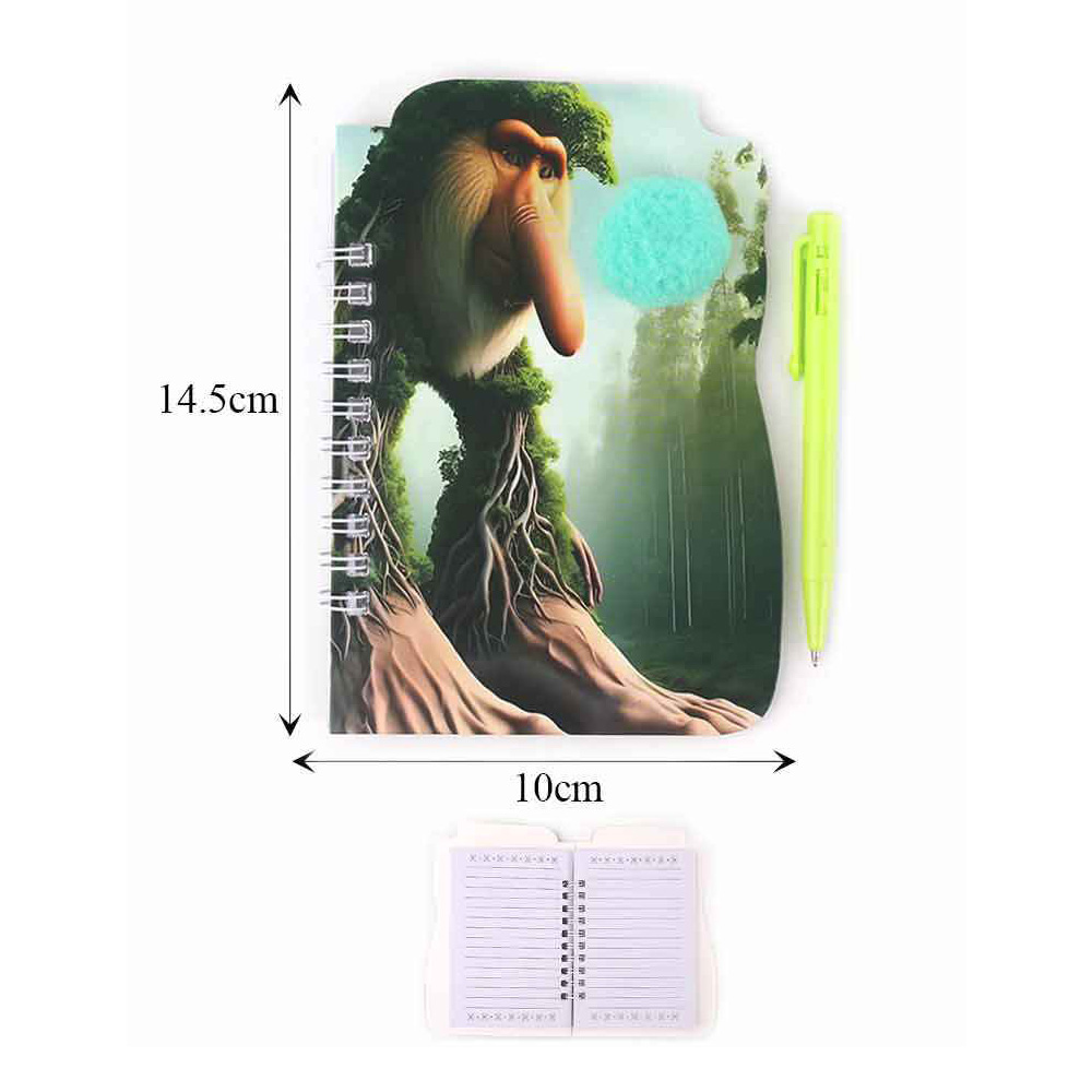 Details • Note Size : 4" X 5.5" • Pen Size : 4" L • Add fun to note-taking with this assorted animal-themed notebook and pen set. Each spiral-bound notebook features a playful 3D cover with a soft pom pom accent and comes paired with a matching pen. Ideal for kids’ school supplies, party favors, or creative journaling activities.