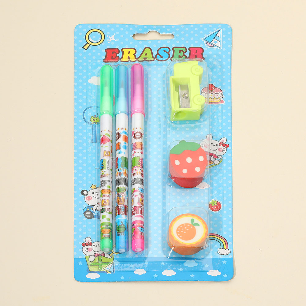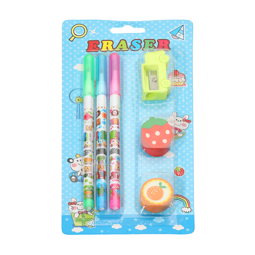 Details • Size : 1.2" - 5.75" L • 3 Stacking Point Pencils, 2 Erasers, 1 Sharpener • Fun 6-piece stationery set for kids featuring markers, sharpener, and novelty erasers. Designed with playful themes to inspire creativity. Great for school, party favors, or everyday art activities.