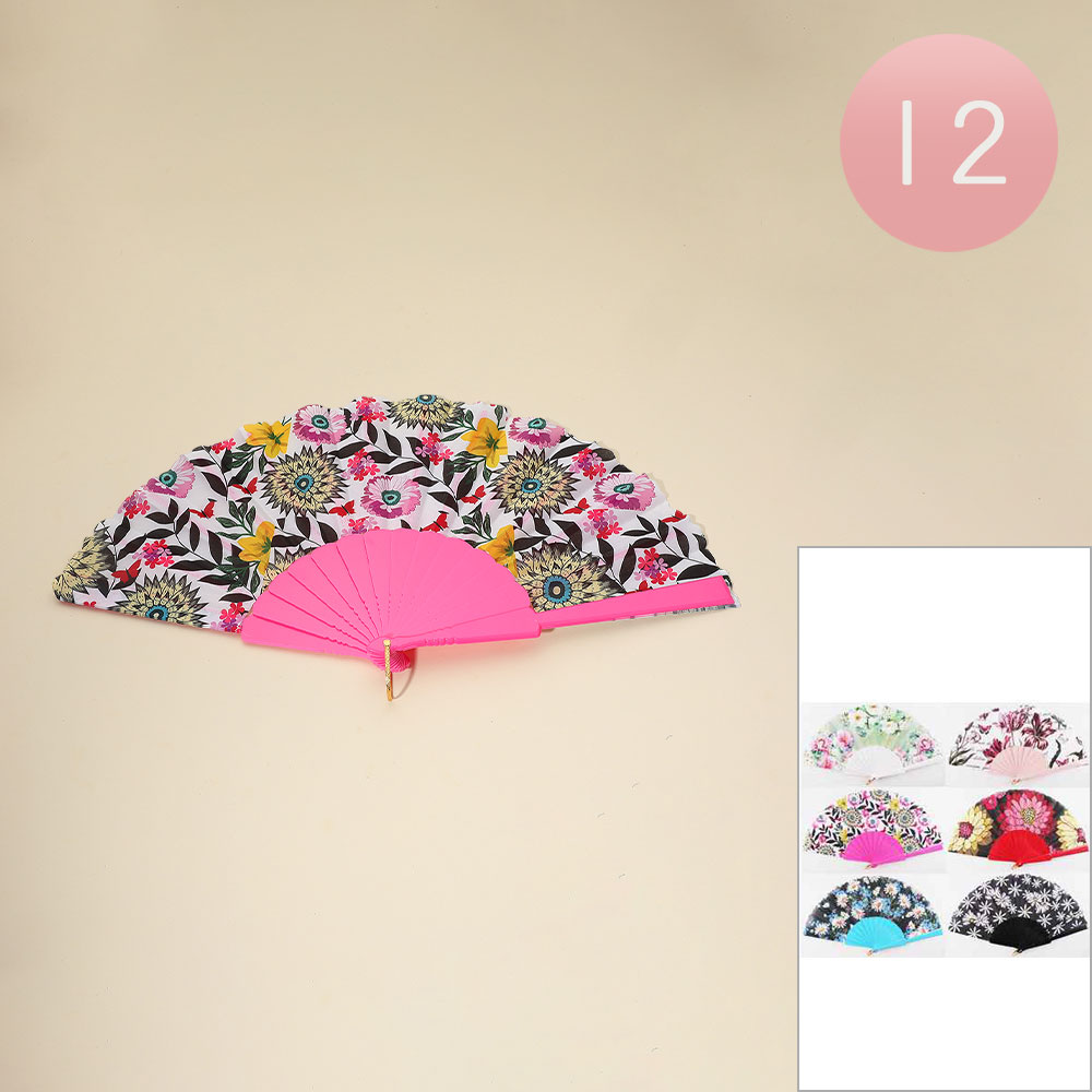 Details • Size : 9" L • Stylish folding hand fan featuring bold floral prints for a vibrant, eye-catching look. Lightweight and portable, ideal for cooling off at events, parties, or outdoor gatherings while adding a touch of elegance and charm.