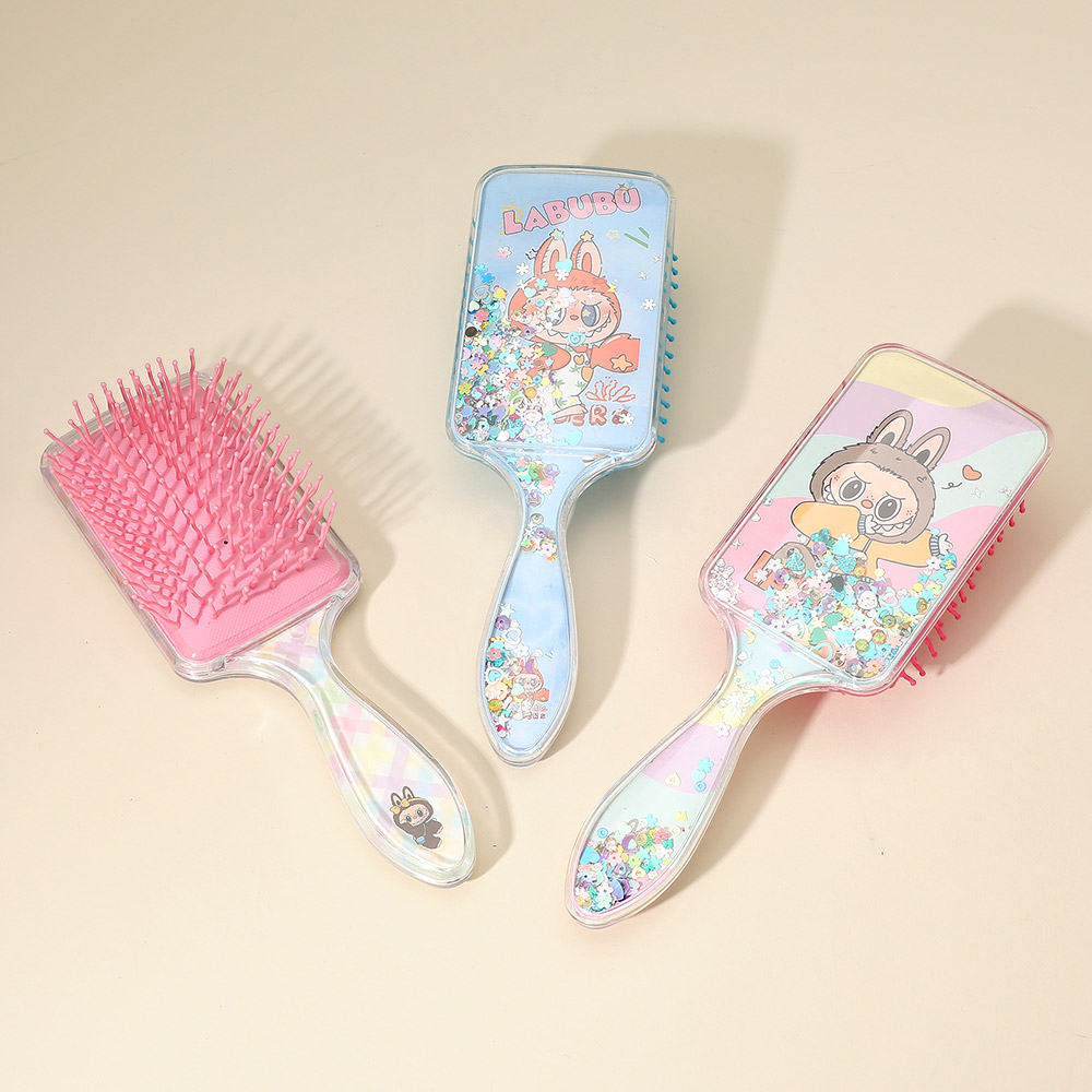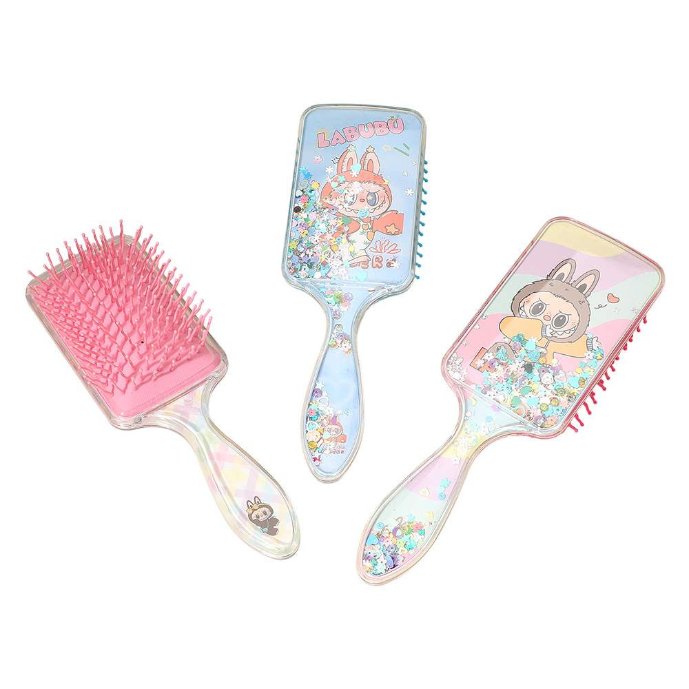 Details • Size : 2.75" X 8.5" • Make hair styling fun with this character glitter paddle hair brush. Designed with adorable cartoon graphics and floating glitter, it detangles gently while adding sparkle to your routine. Perfect for kids or collectors, this cute brush combines practicality with playful charm.
