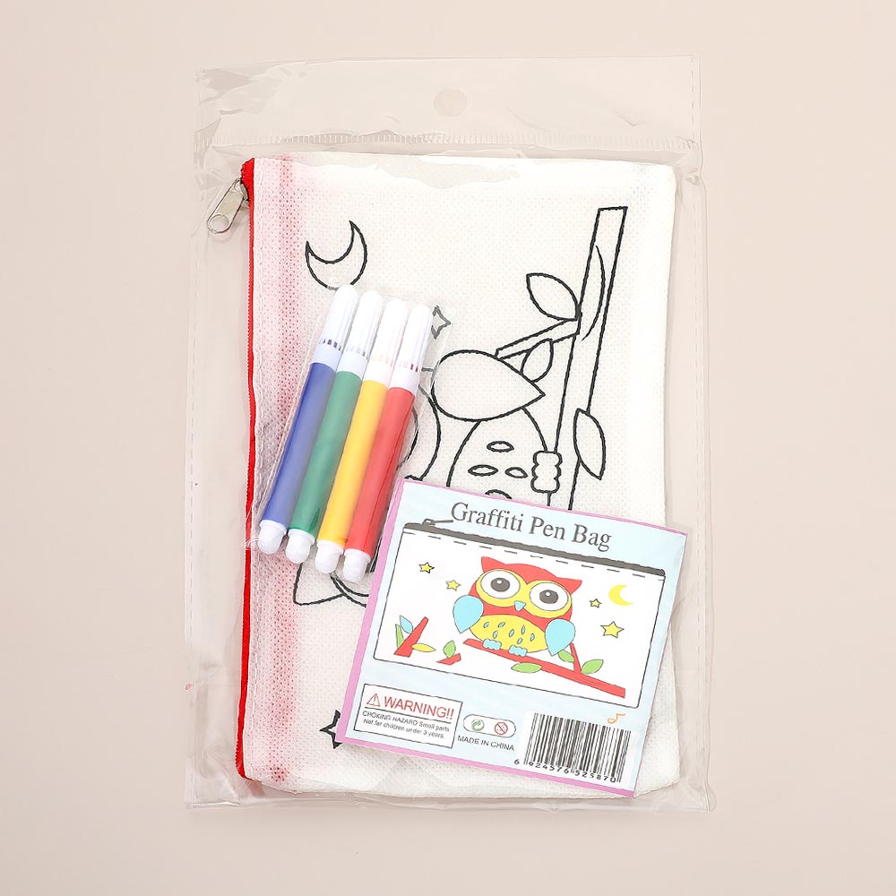 Details • Pouch Size : 4.7" X 8" • Pen Size : 3.5" L • Comes with 4 Colored Pens • Creative kids graffiti pen bag craft set featuring a printable zip pouch and included markers for easy decorating fun. Perfect for party favors, classroom projects, rainy-day activities, or travel entertainment that encourages hands-on creativity and imaginative play.