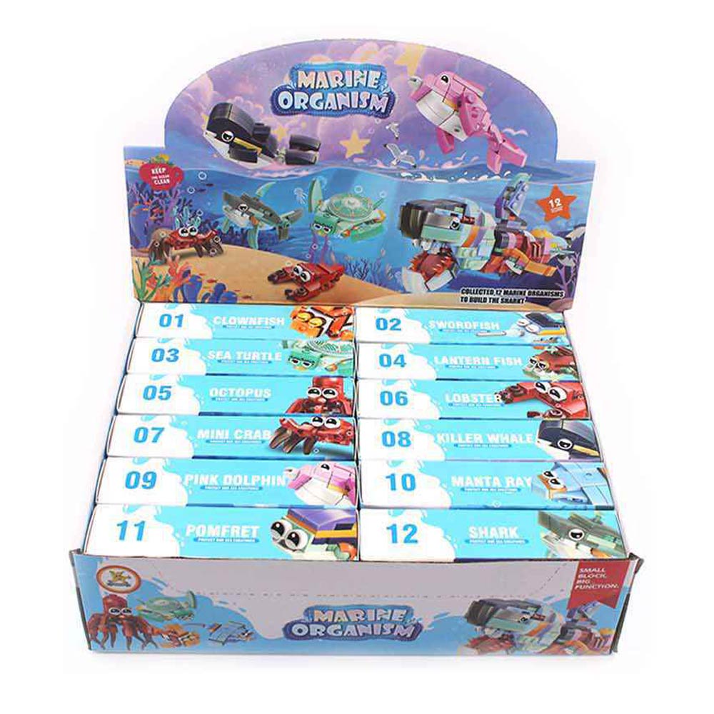 Details • Size : 5" X 2.5" • This marine organism mini building toy features fun sea creature designs that encourage hands-on play and learning. Each set supports creativity, problem-solving, and fine motor development while inspiring ocean-themed imagination. Ideal for party favors, classroom activities, gift shops, and novelty toy assortments for kids.