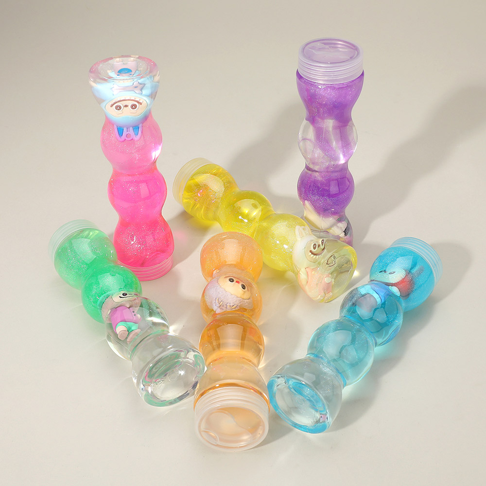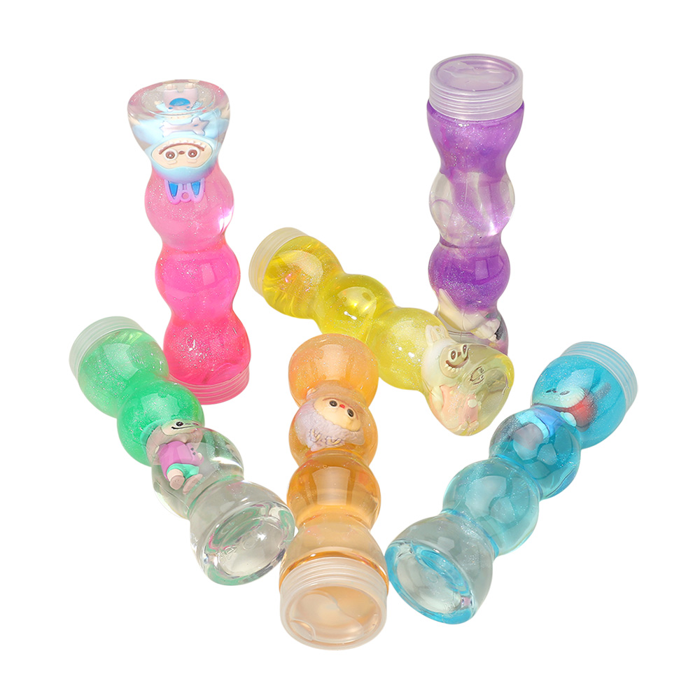 Details • Size : 6.3" L • Crystal mud slime toy set featuring glittery slime in fun character containers. Soft, stretchy, and satisfying to play with, this slime provides a relaxing sensory experience for kids. Great for parties, gifts, or stress relief, offering endless creative fun and squishy entertainment.