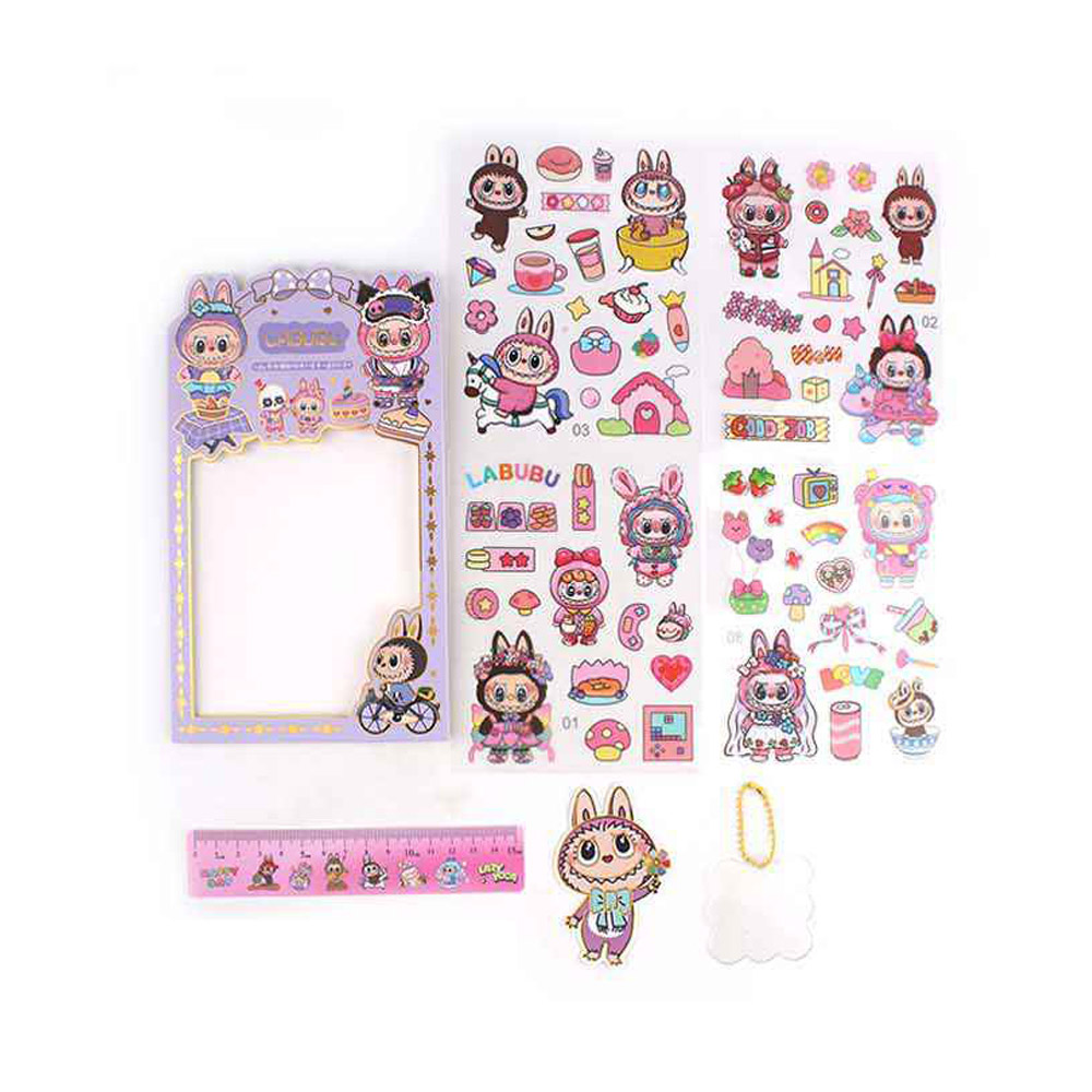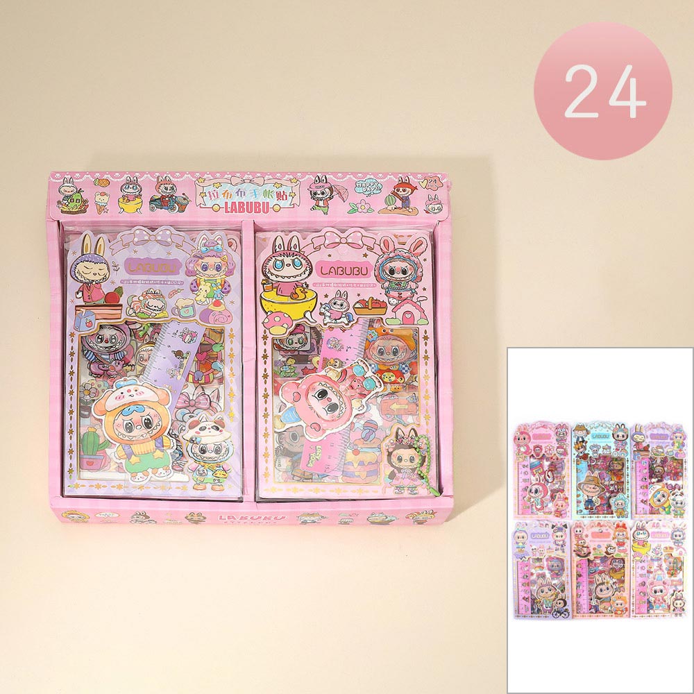 Details • Sticker Sheet Size : 4.7" X 6" • Character Card Size : 3.5" L • Ruler Size : 1.25" X 6.5" • Clear Tag Size : 3.25" L • Brighten up any desk with this cute character stationery sticker gift box. Filled with fun pens, stickers, and accessories, it encourages creativity and organization in a playful way. Ideal for gifting or school use, this charming set adds joy and color to every writing or crafting session.