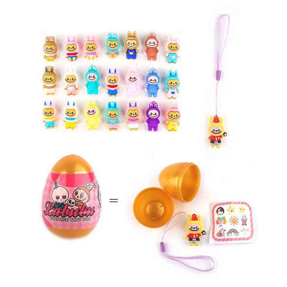 Details • Size : 2" X 3" • Fun surprise capsule toy collection featuring 24 mini character figures. Each egg includes a random collectible with keychain strap and stickers. Perfect for kids and collectors who love mystery toys, blind boxes, and adorable accessories for play or decoration.