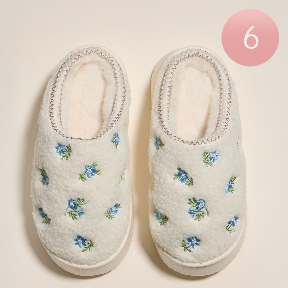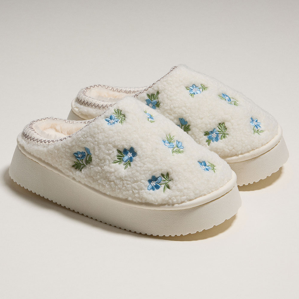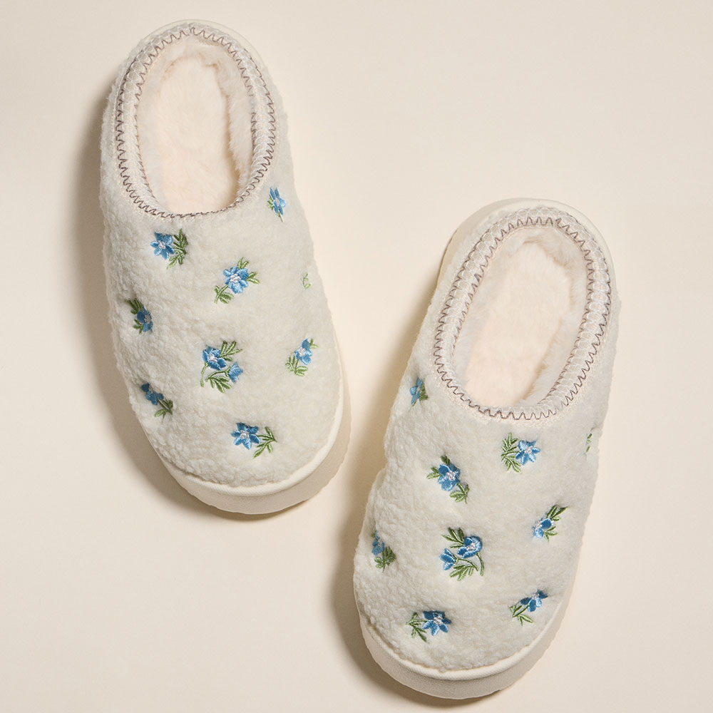 • Step into comfort with these sherpa-lined slippers featuring delicate floral embroidery. Perfect for lounging at home, they offer plush warmth and a charming cottagecore vibe all season long.