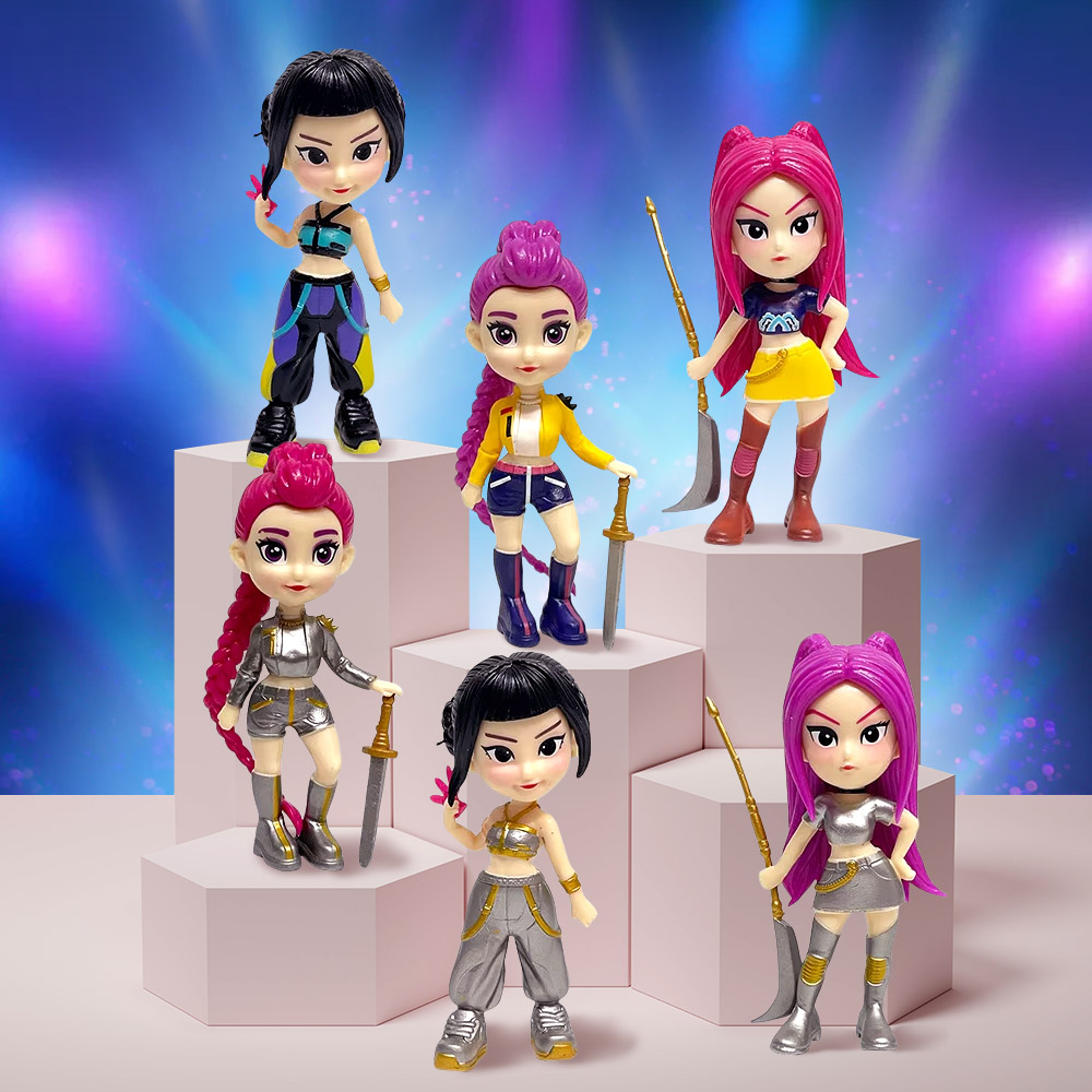 Details • Size : 4" L • Collect your favorite characters with this K-Pop Demon Hunters Keychain Blind Box 6pcs Set! Each blind box contains a surprise keychain & card, perfect for fans and collectors of the popular K-Pop Demon Hunters series. Display them, attach to your bag, or trade with friends for a fun and exciting collectible experience.