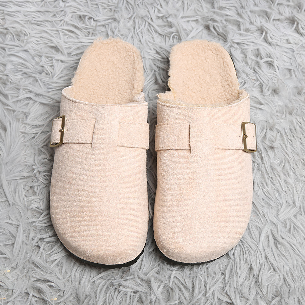Solid Faux Fur Suede Buckle Mule Clog Slippers