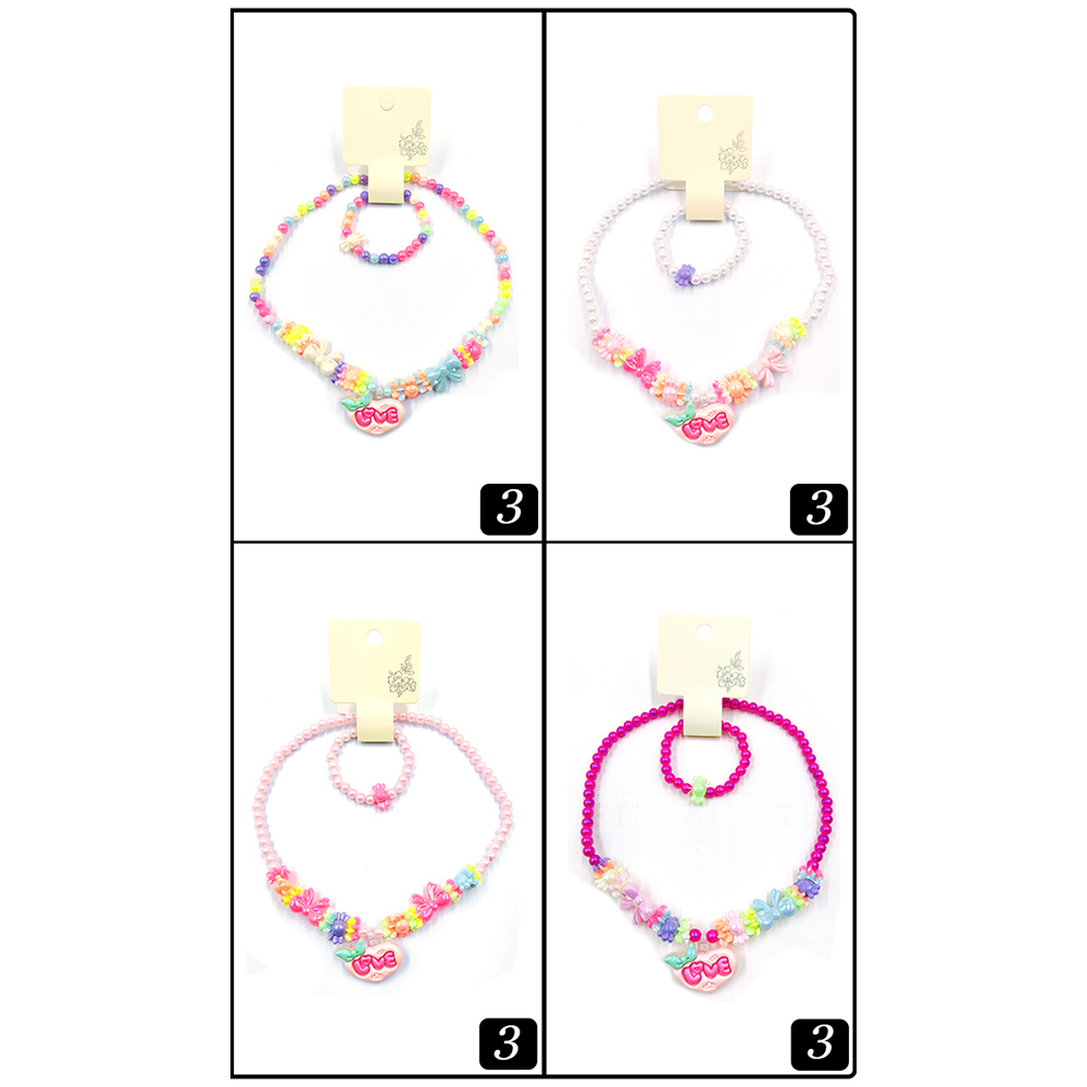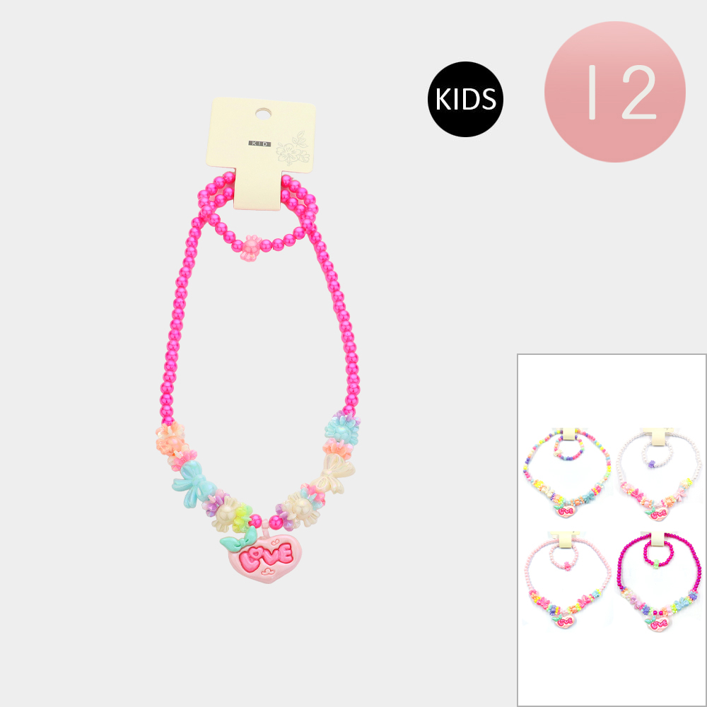 12 SET OF 2 - LOVE Message Heart Pendant Bow Pointed Beaded Kids Bracelet Necklace Sets