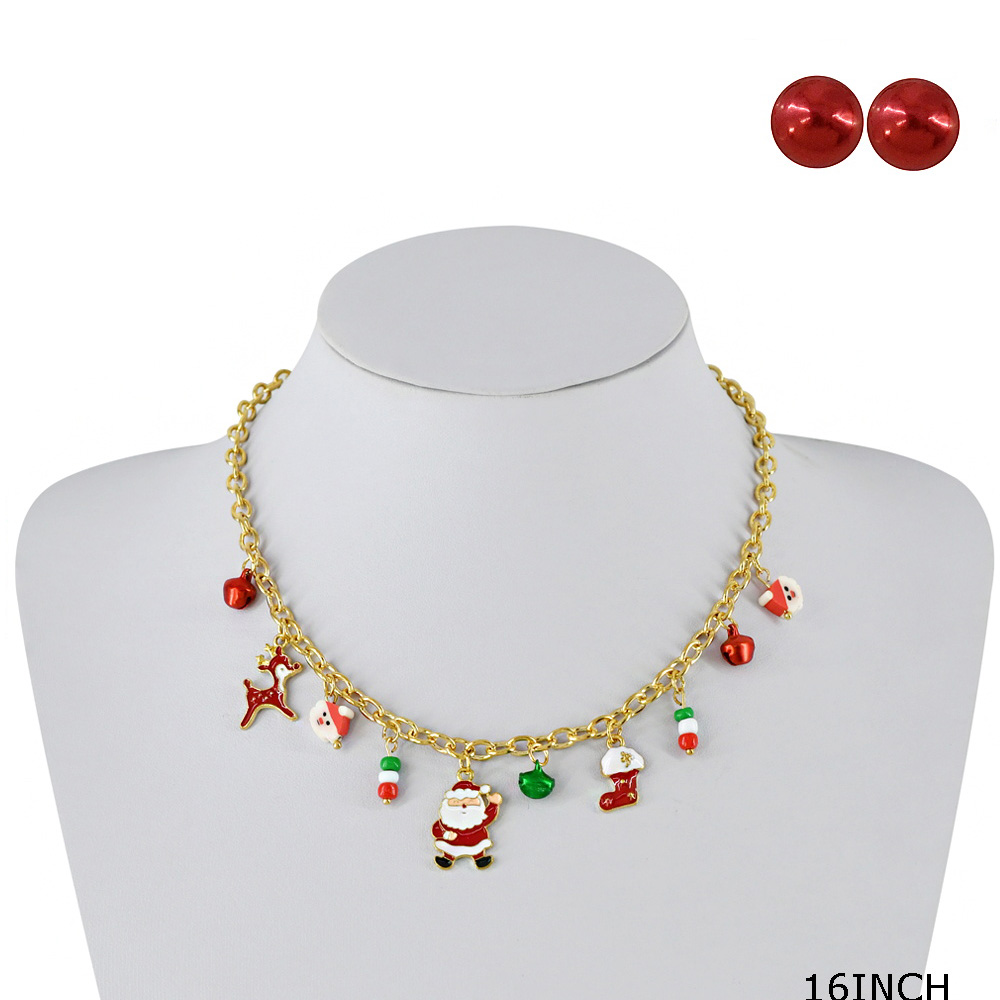 Details • Size : 16" + 3" L • Decor Size : 1" L • Earrings Size : 0.3" L • Celebrate the season with this festive Christmas necklace set featuring playful holiday-themed pendants and vibrant details. Perfect for gifting or adding cheerful style to your outfits, this bracelet set brings a touch of seasonal sparkle to every look.