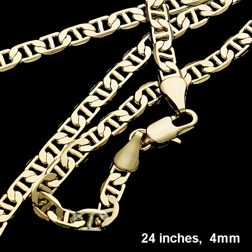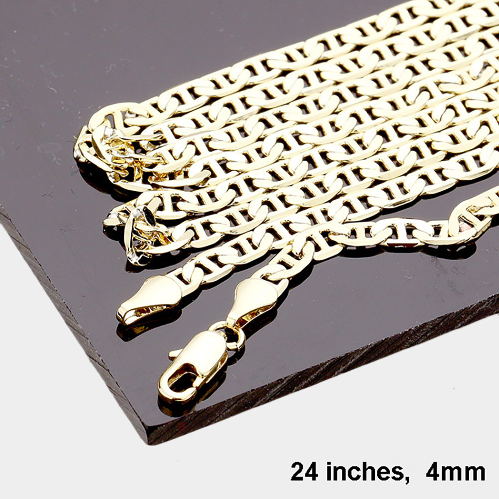 Details • Necklace Size : 24" L • Decor Size : 4mm • Lobster Clasp Closure • Unisex • Sleek 24-inch chain with 4mm width and a polished link design. Lightweight and durable with a secure lobster clasp, perfect for everyday wear or layering with other pieces.