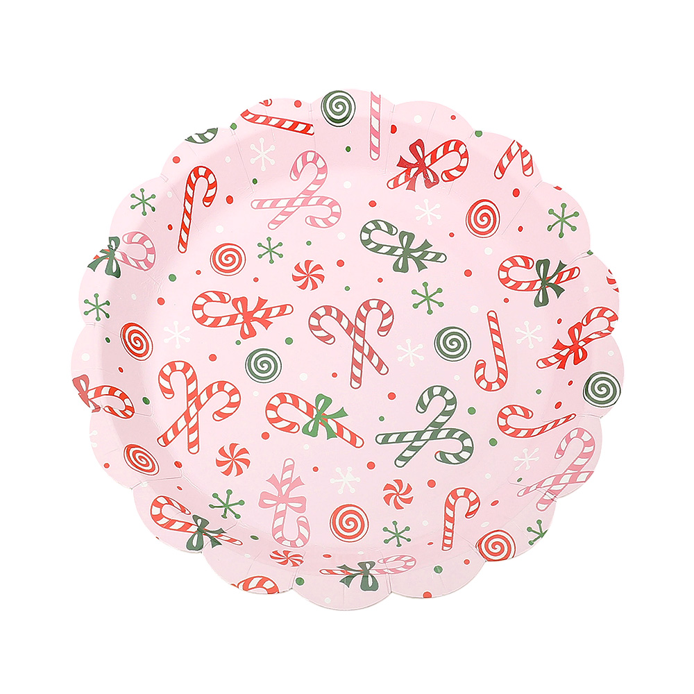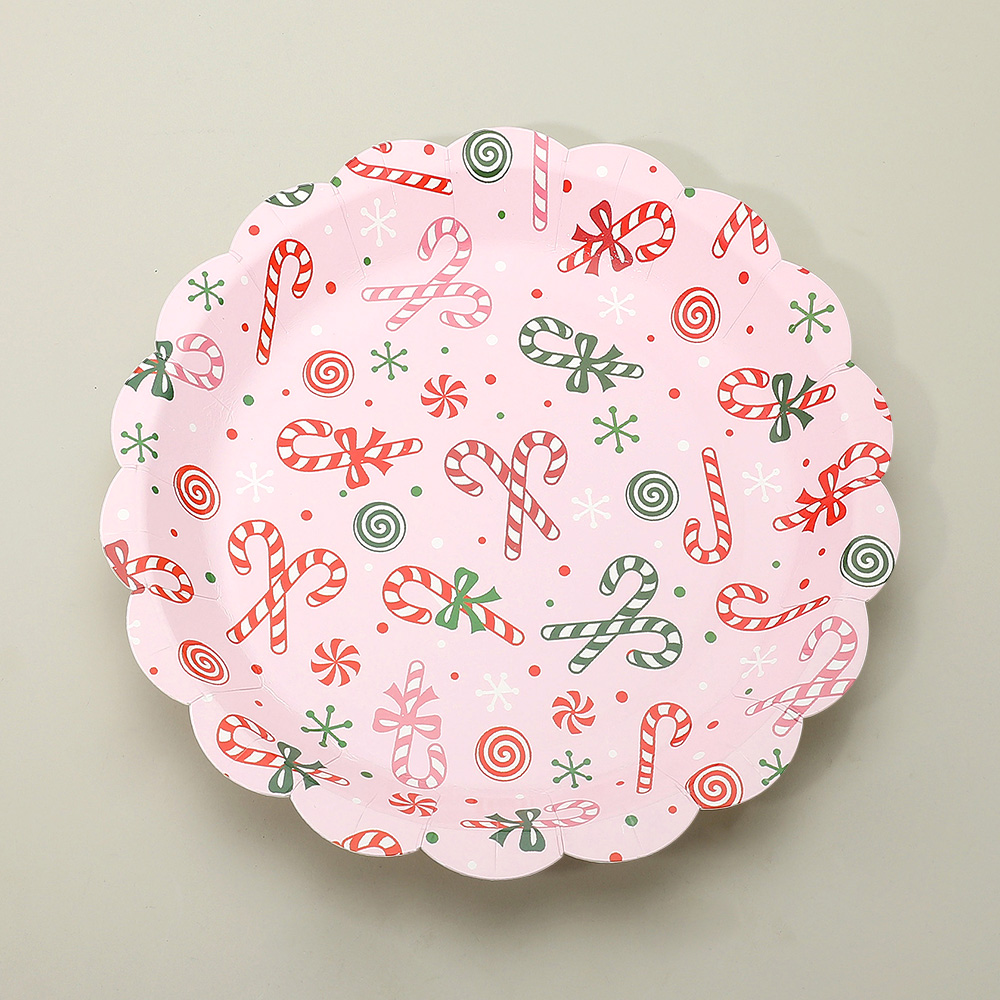 10PCS - Holiday Candy Cane Pattern Print Paper Plates