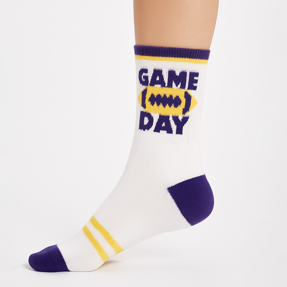 • Step up your team spirit with these gameday crew socks featuring a bold football and “Game Day” design. Perfect for tailgates, sports events, or casual wear, this 10-pack offers comfort and style, making them an essential accessory for every dedicated sports fan.