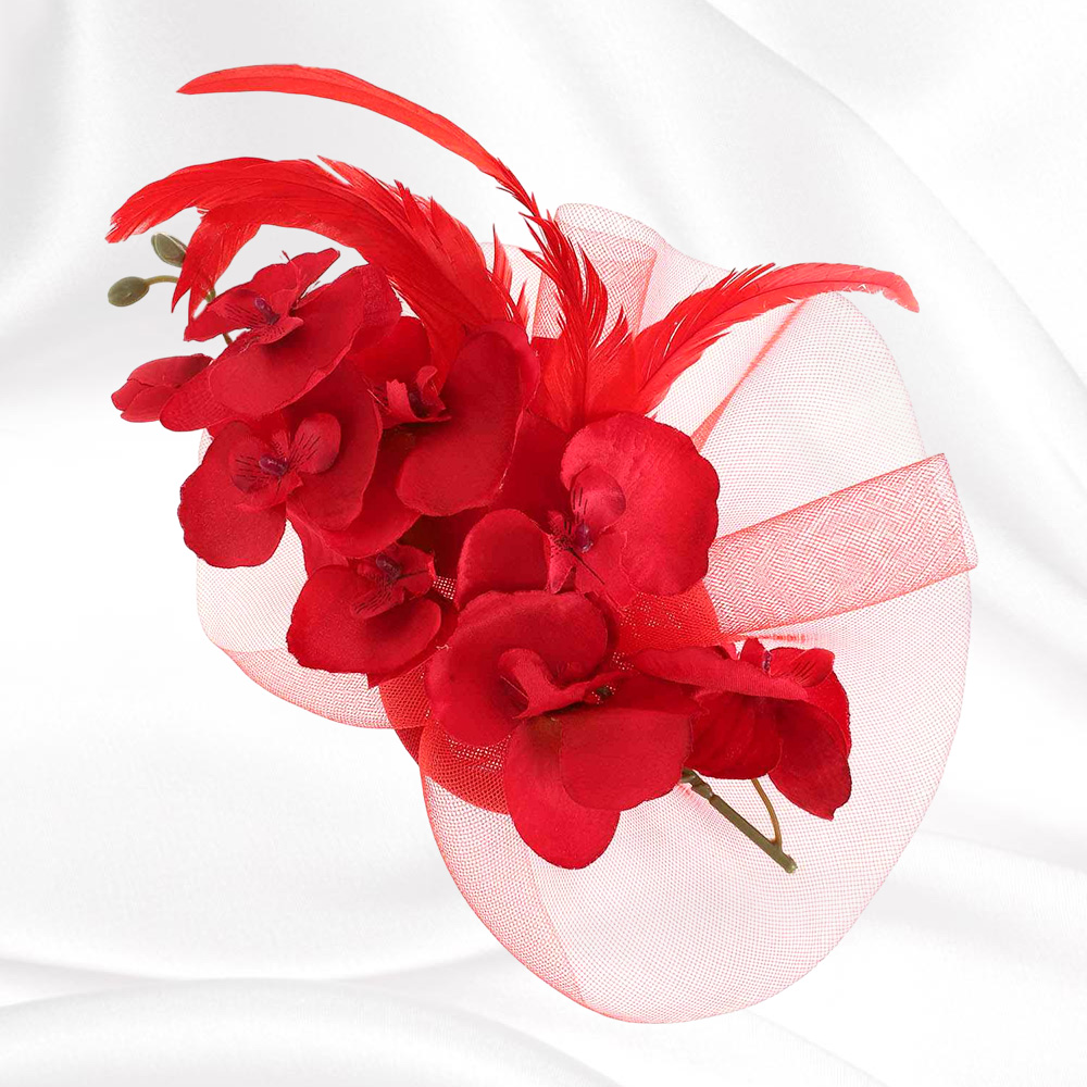 Feather Accent Mesh Floral Fascinator Hair Clip Headband