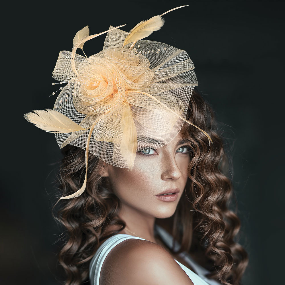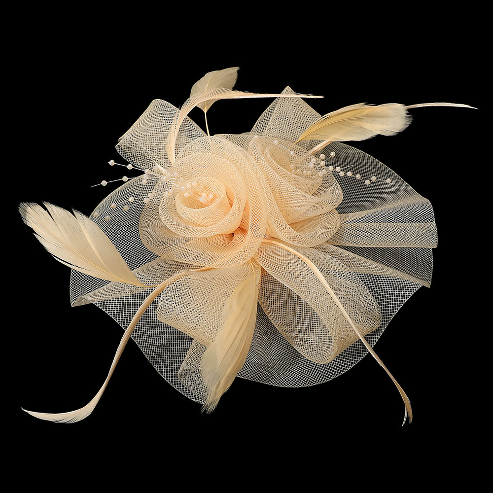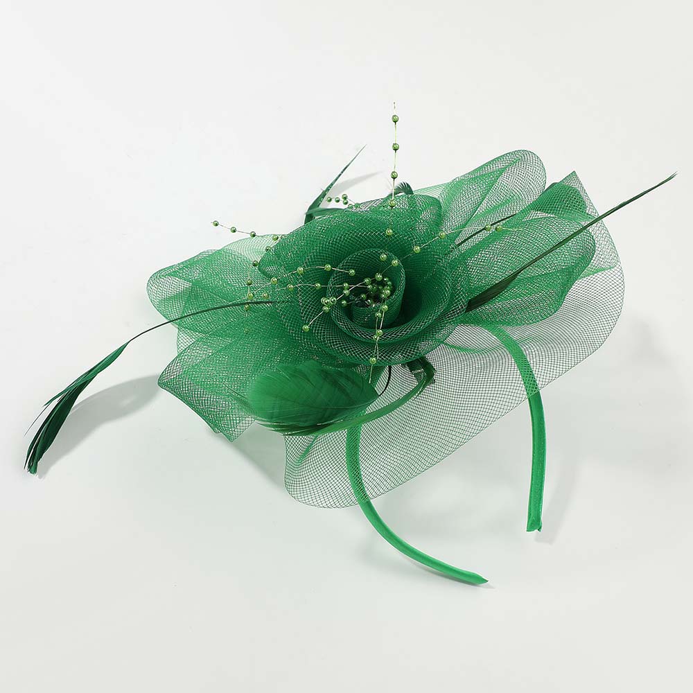 Flower Feather Pearl Mesh Bow Fascinator / Headband