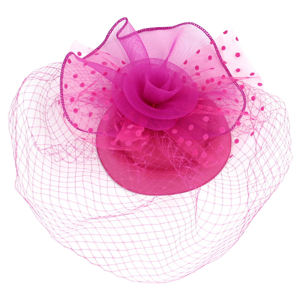 • Chic black fascinator hat featuring a delicate mesh veil, floral centerpiece, and dotted netting. Perfect for weddings, tea parties, races, or formal events, this headpiece adds timeless sophistication and classic charm.
