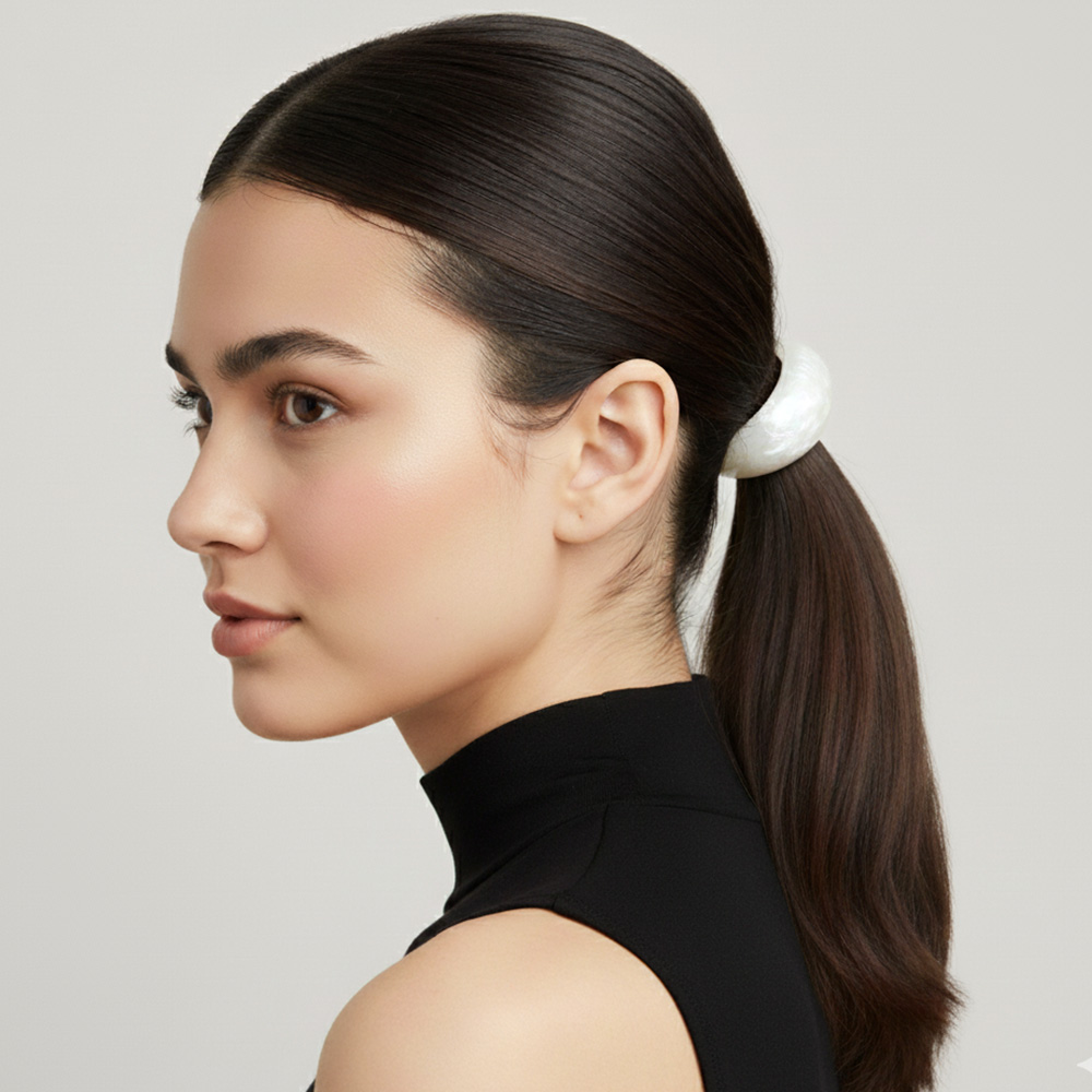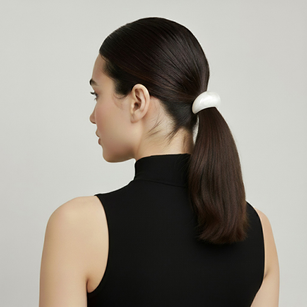 • Elevate your look with this curved resin accent hair tie, crafted with a sleek polished finish. The strong elastic band ensures a secure and comfortable hold, while the modern design adds a refined touch to ponytails, buns, and other everyday hairstyles.