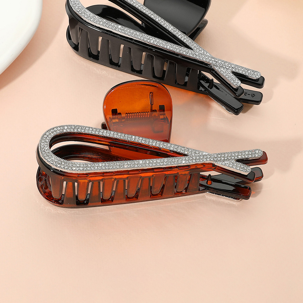 Stone Paved Open Crisscross Frame Hair Claw Clip