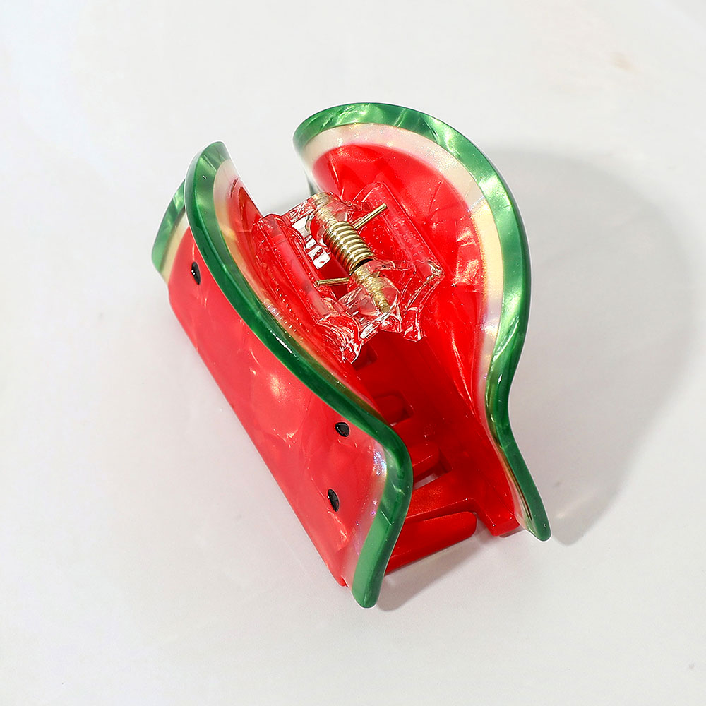 • Bring a refreshing touch to your hairstyle with this watermelon slice hair claw clip. Designed for a secure grip, this playful fruit-inspired accessory adds a unique and cheerful vibe to your everyday look.
