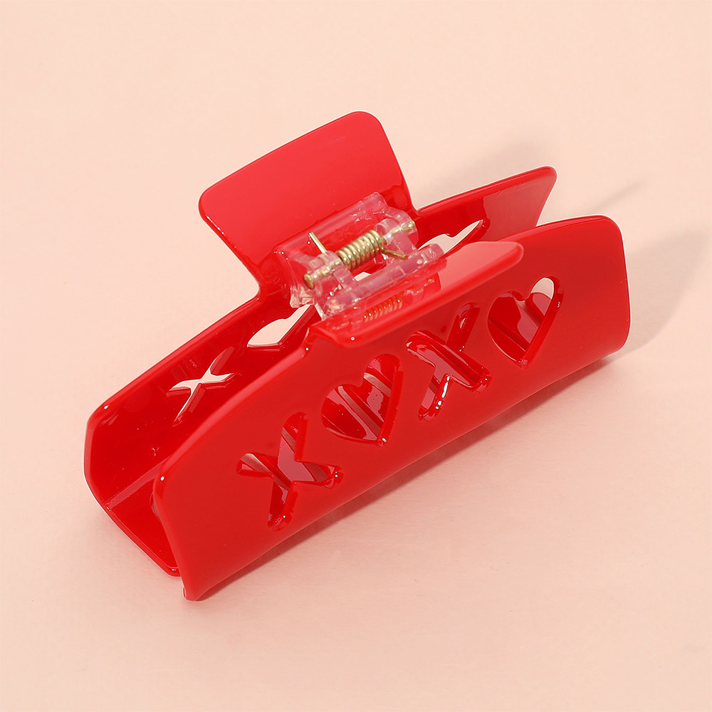 Details • Size : 4" X 2" • Stylish hair claw clip featuring playful XO and heart cutout details for a trendy, everyday look. Designed to secure hair comfortably while adding a fun, modern accent. Perfect for casual styling, gifting, or boutique collections seeking eye-catching hair accessories.