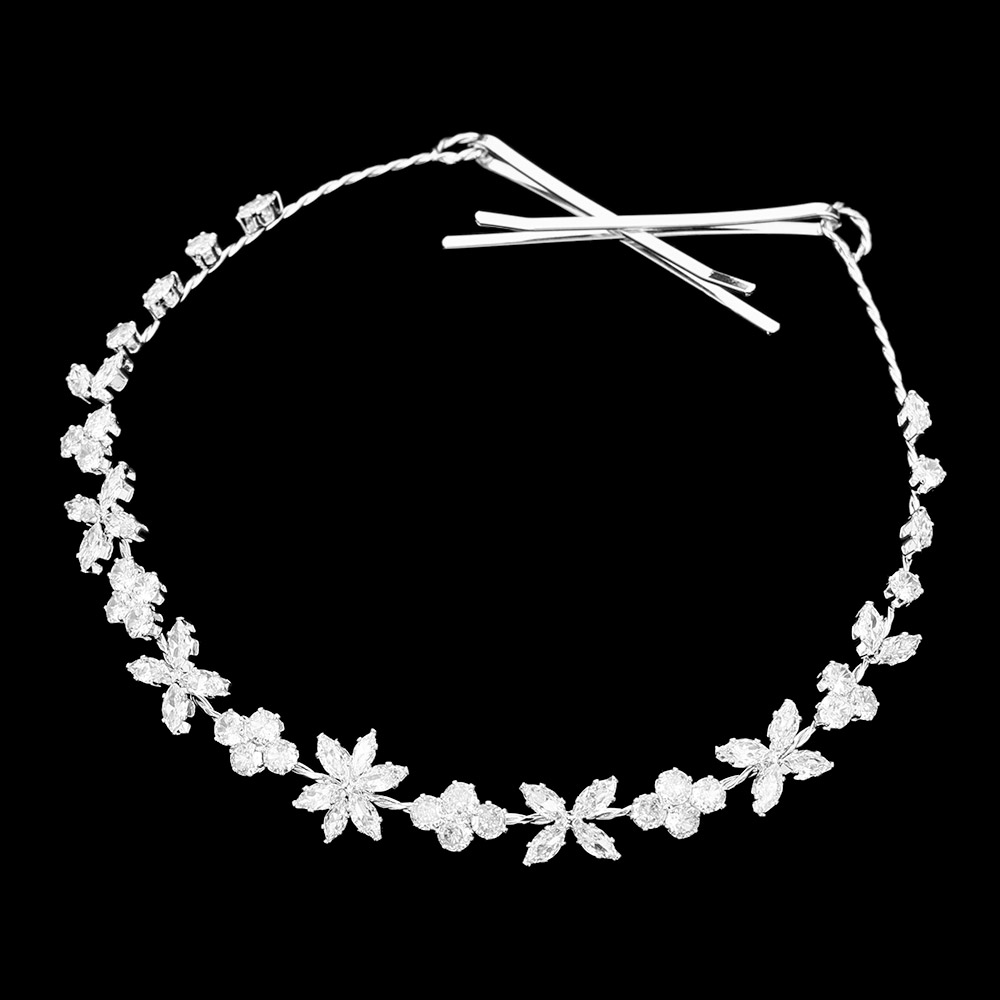 Details • Size : 11" X 0.6" • A Pair Bobbi Pin Included • Elegant bridal headband featuring sparkling teardrop crystals and rhinestone leaf accents arranged along a flexible vine. Includes secure pins for styling. Perfect for weddings, proms, and special occasions to add refined shimmer and detail. • Lead and Nickel Compliant