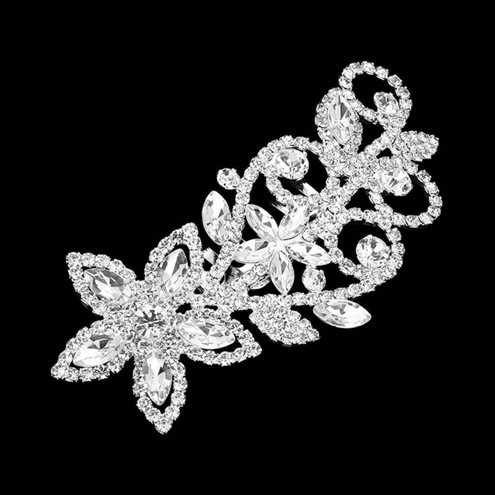 Marquise Stone Cluster Rhinestone Pave Floral Hair Comb