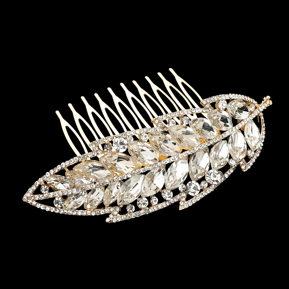 Marquise Stone Embellished Leaf Hair Comb Marquise Stone Embellished Leaf Hair Comb