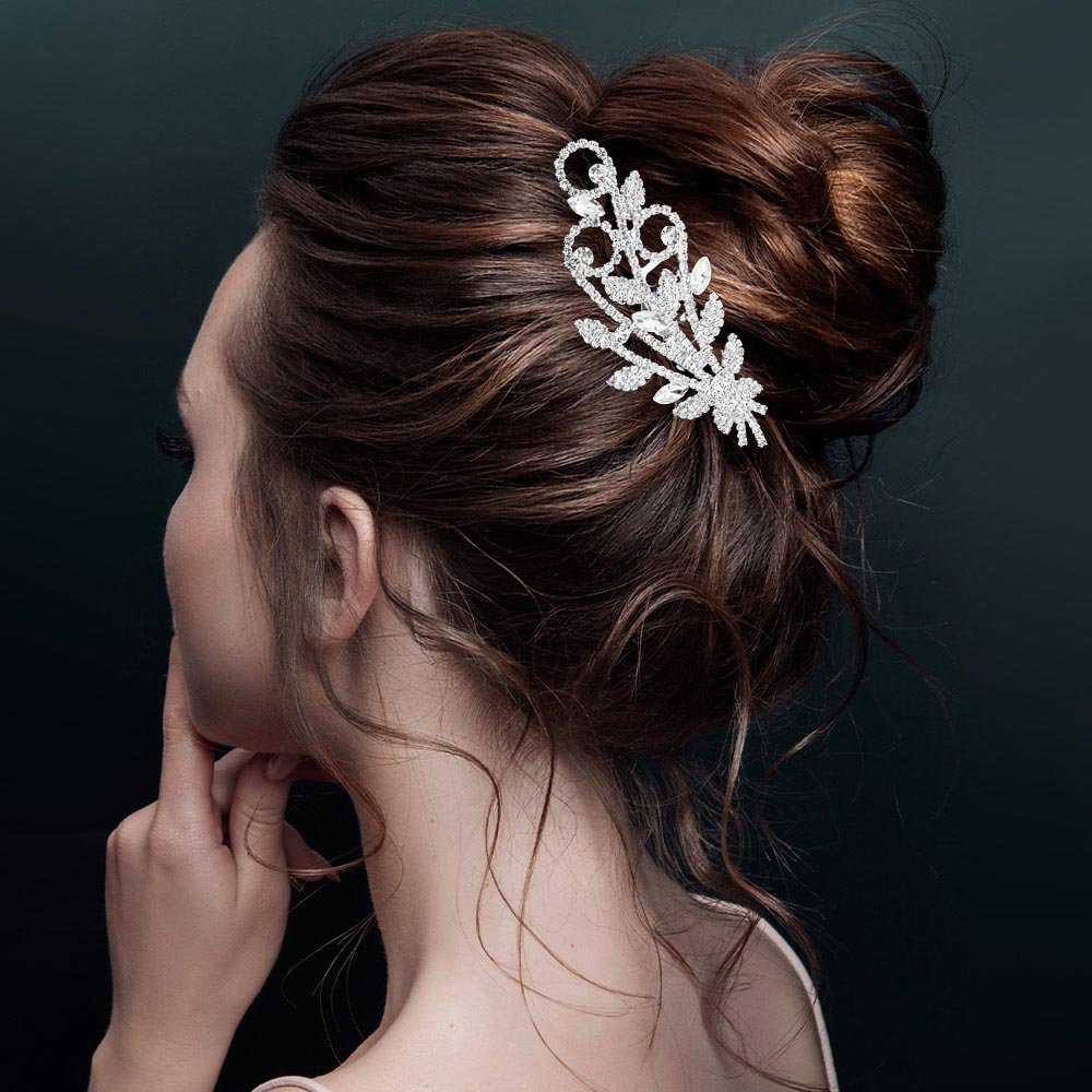 • Add refined sparkle to any updo with this crystal floral hair comb featuring intricate leaf and flower detailing. The lightweight design secures easily into bridal, formal, or evening hairstyles, creating an elegant, eye-catching accent for special occasions.
