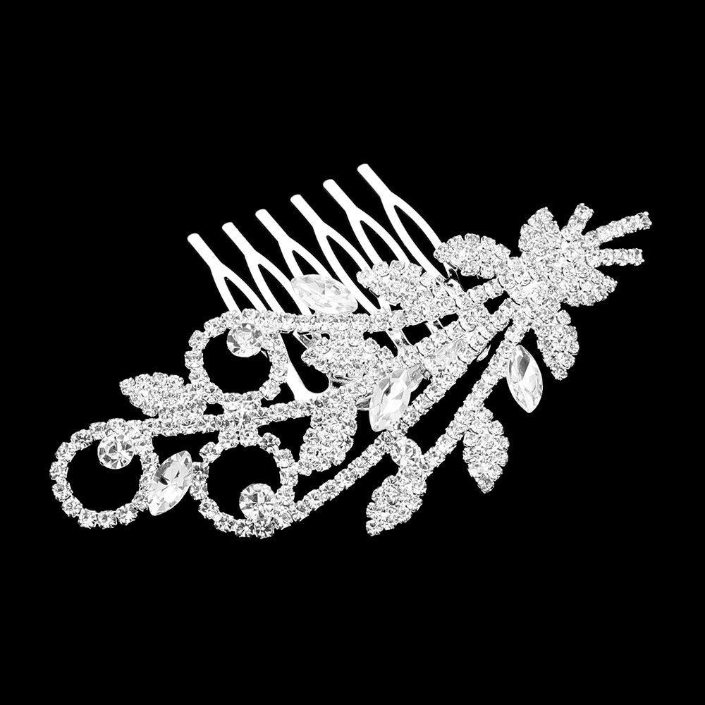 Rhinestone Paved Leaf Floral Hair Comb Rhinestone Paved Leaf Floral Hair Comb