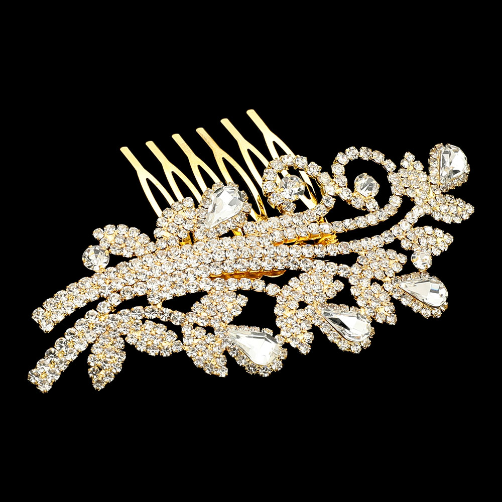 Teardrop Stone Cluster Rhinestone Paved Branch Hair Comb