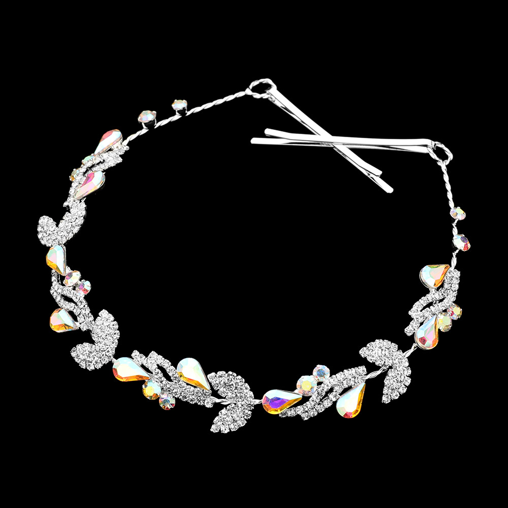 Details • Size : 11" X 0.6" • A Pair Bobbi Pin Included • Enhance any bridal or formal look with this crystal teardrop floral vine headband. Designed with sparkling rhinestones and flexible wire for easy shaping, it secures with included pins—perfect for weddings, proms, and elegant occasions. • Lead and Nickel Compliant