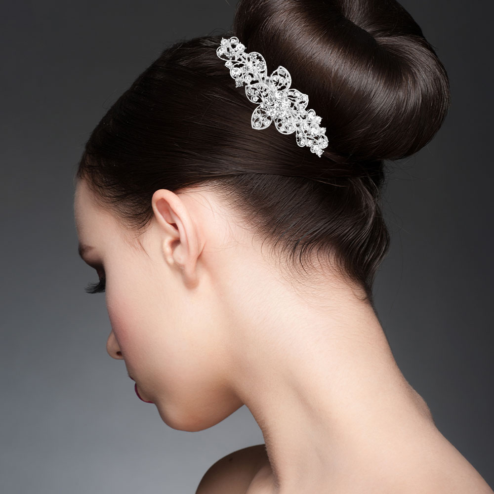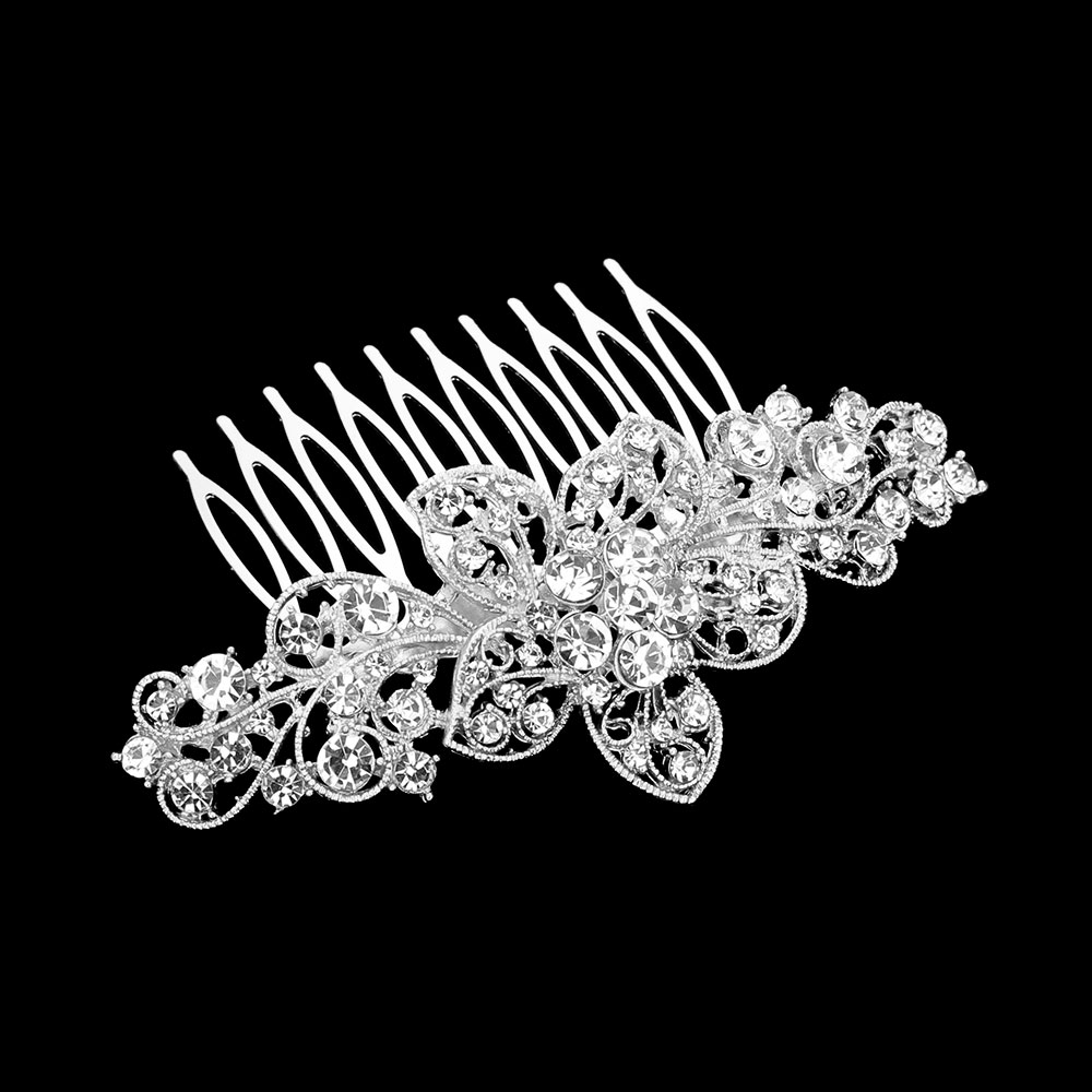• This vintage crystal filigree hair comb combines timeless charm with radiant sparkle. Intricately designed with floral motifs and shimmering stones, it’s ideal for weddings, formal events, or special occasions. A beautifully detailed accessory that adds elegance and sophistication to any hairstyle.