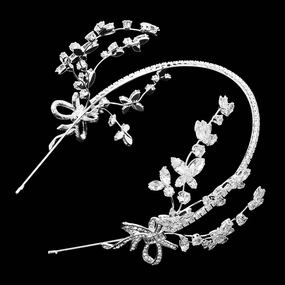 Details • Size : 2.8" H • Elegant floral hair vine headpiece designed with sparkling crystal accents and delicate branch details for a romantic look. Perfect for weddings, bridal styling, proms, and formal events. Flexible design allows easy shaping for updos, half-up styles, or loose hairstyles.