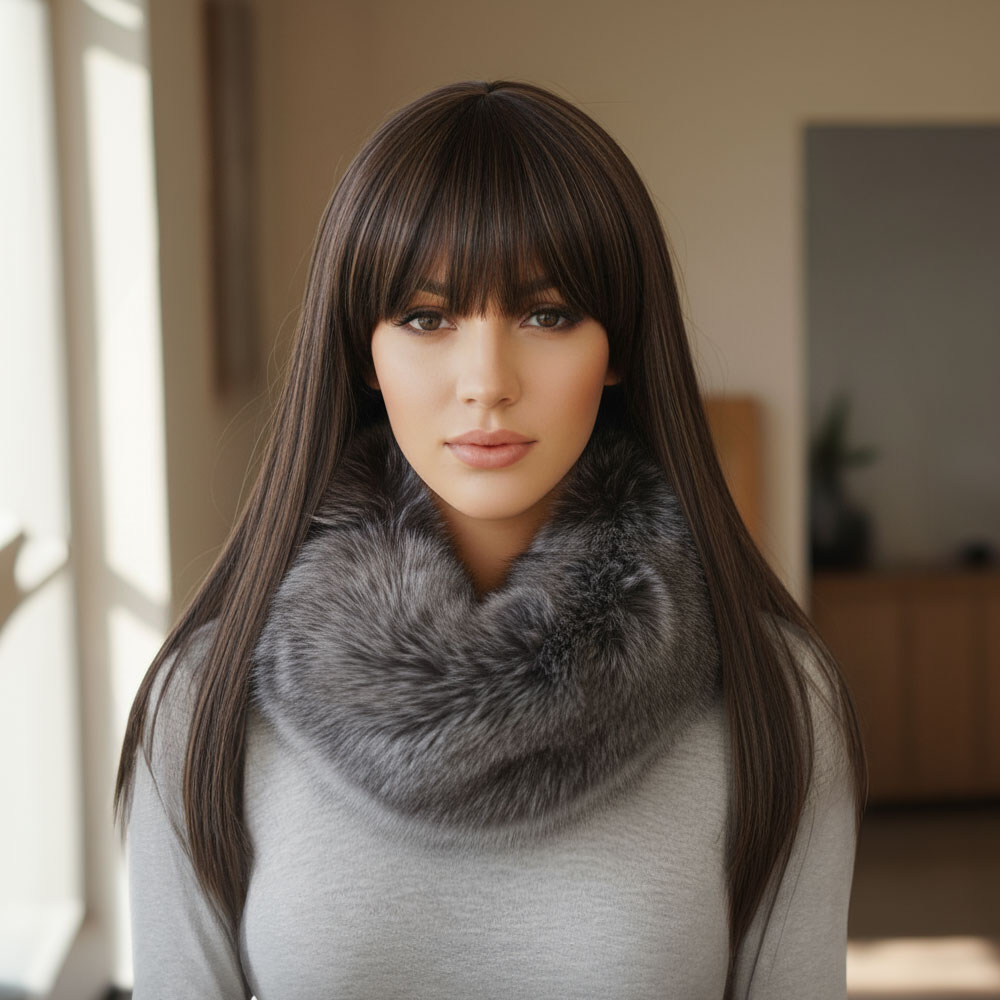 Details • Size : 13" X 5" • Material : 100% Polyester • Dual : Headband / Scarf • Stylish winter hat and scarf set featuring a soft, fluffy finish for a chic cold-weather look. Designed for warmth and elegance, this cozy accessory duo adds a fashionable touch to your seasonal wardrobe, perfect for both casual and dressy outfits.
